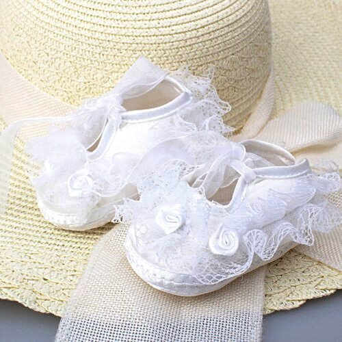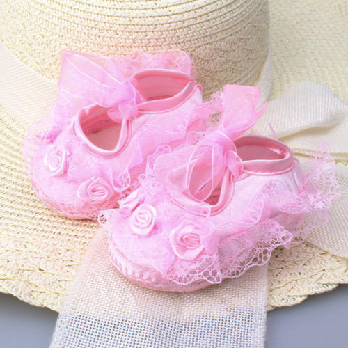 Chaussures Bébé en Satin à Dentelle Fleurie