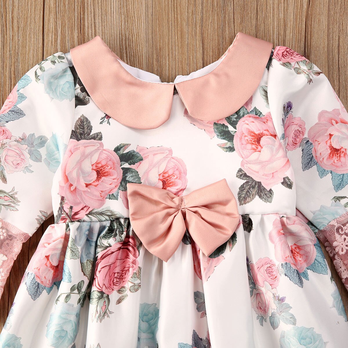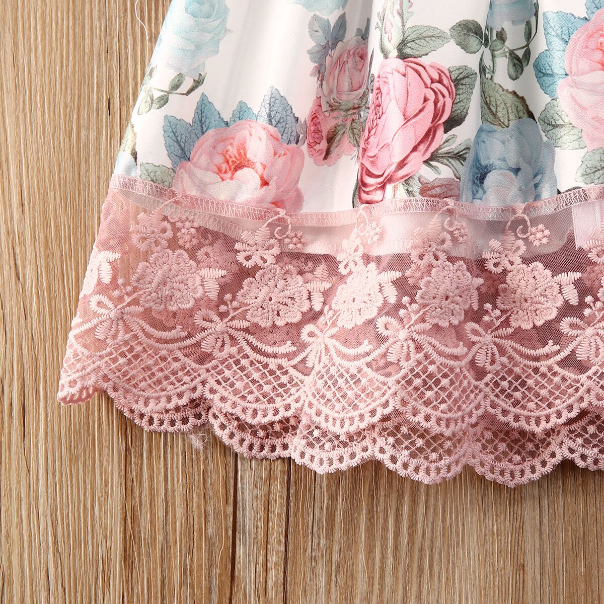 - Blumenmuster mit Spitzenakzenten und Schleifen-Design.