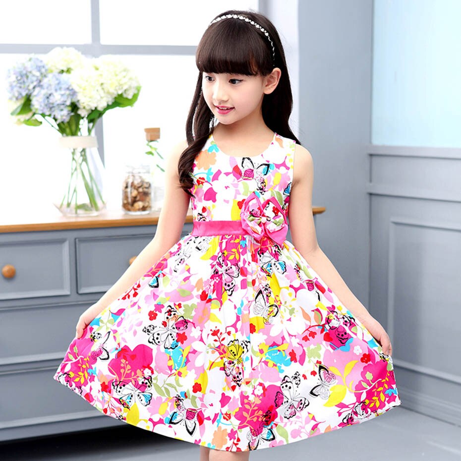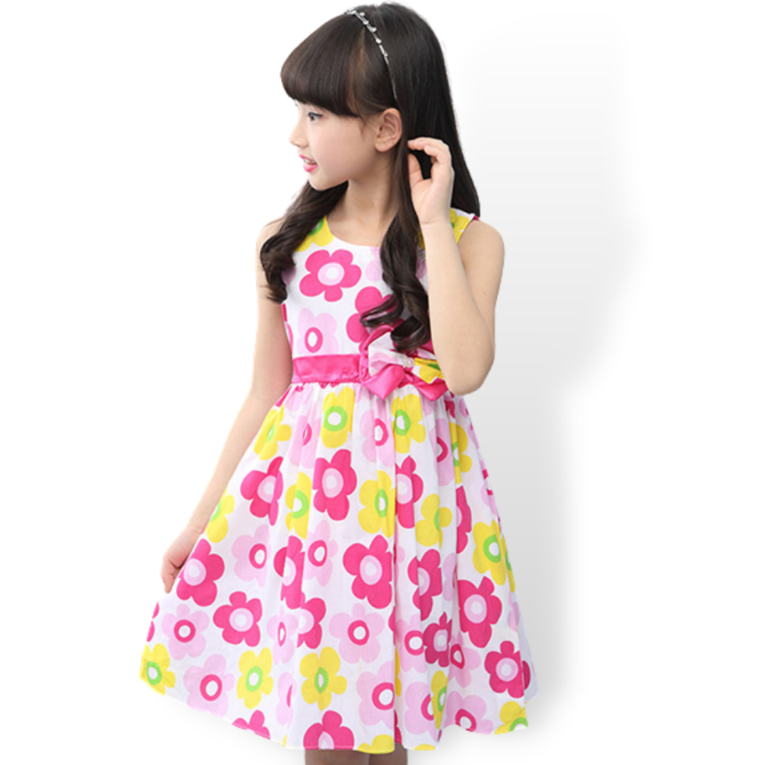 Machen Sie diese spaßigen Sommertage modisch für Ihre Mädchen mit diesem Mädchen-Sommerkleid mit Blumenmuster und Schleifen-Gürtel. Es ist ein luftiges, bequemes Kleid, das jedes kleine Mädchen, das es trägt, den ganzen Tag über atemberaubend schön aussehen lässt.