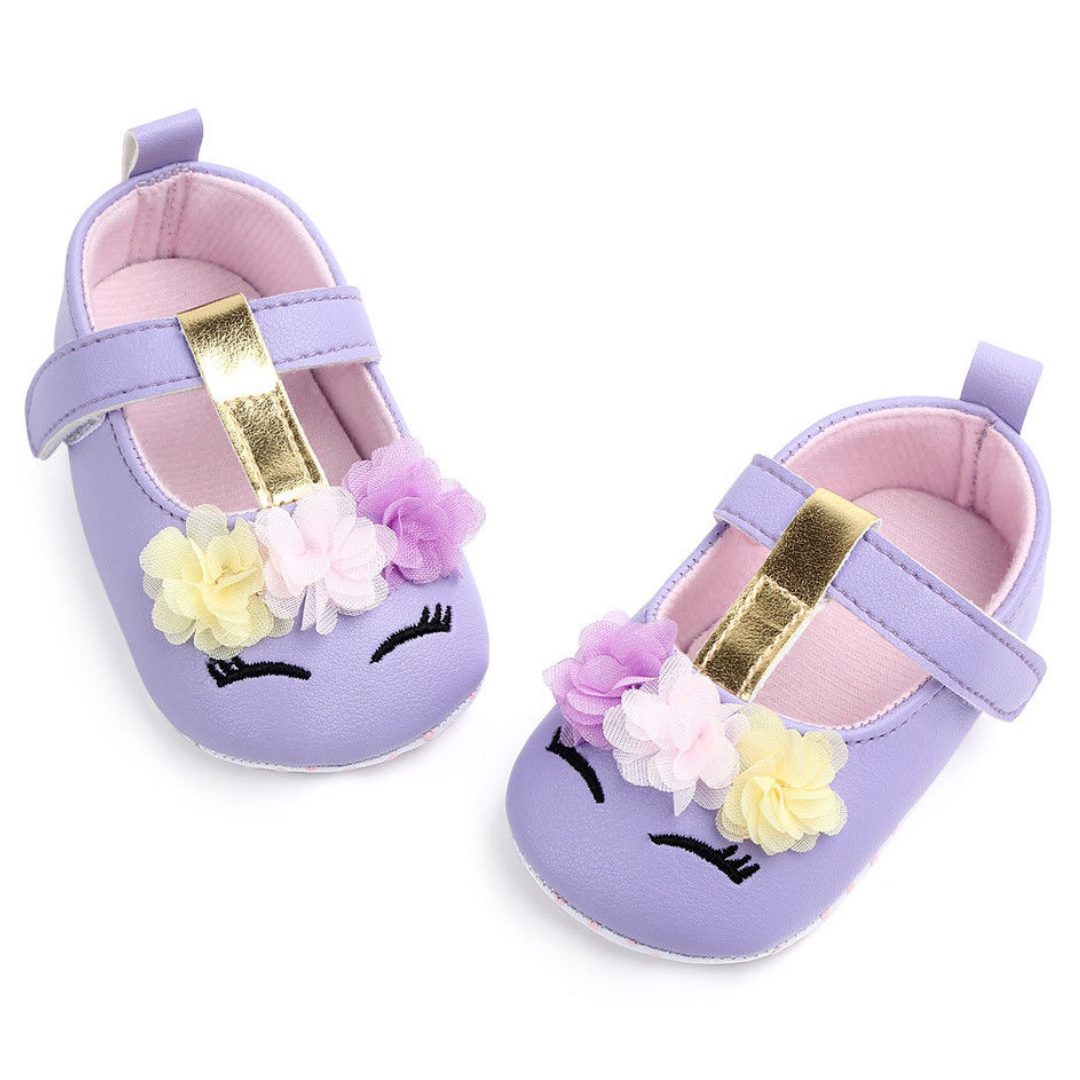 Diese Flower Unicorn Soft Sole Baby Mädchen Lauflernschuhe sind sichere und hübsche Schuhe für Mädchen, die speziell im niedlichen Einhorn-Stil entworfen wurden. Sie bestehen aus hochwertigem Leder und atmungsaktivem Material, mit einer weichen Sohle, die sehr angenehm zu tragen ist.