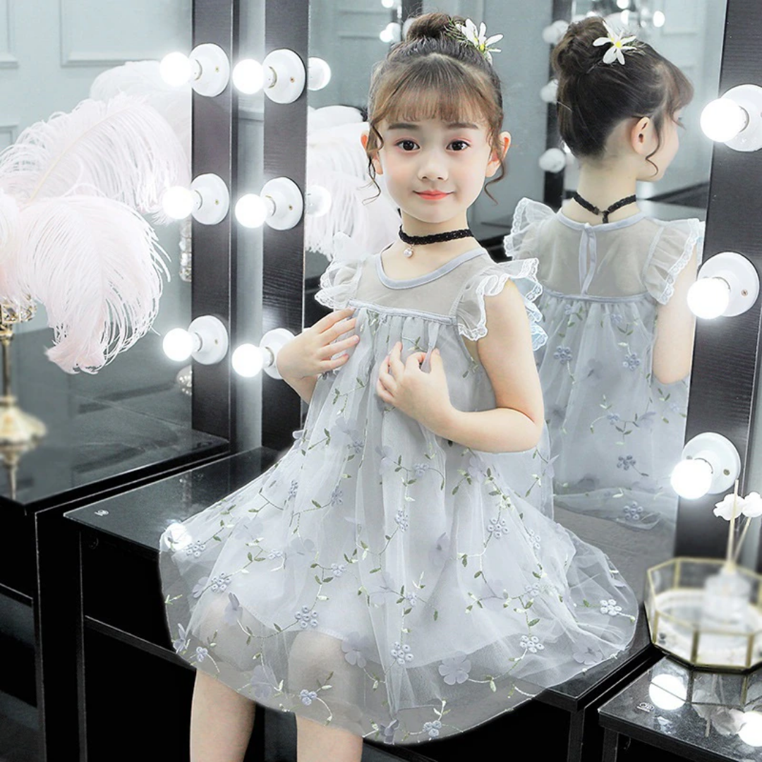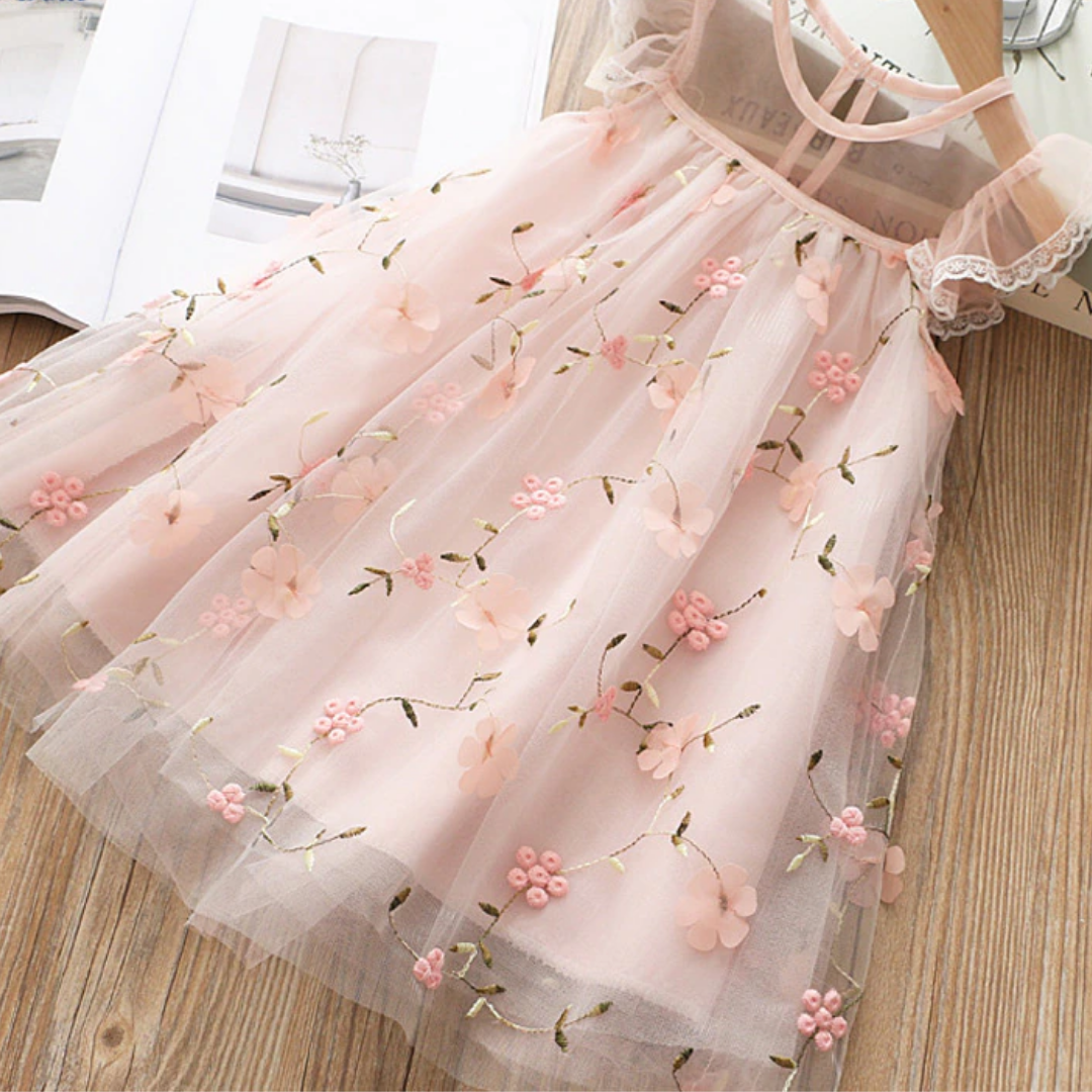 Robe d'été en tulle à manches volantes et broderie florale pour filles