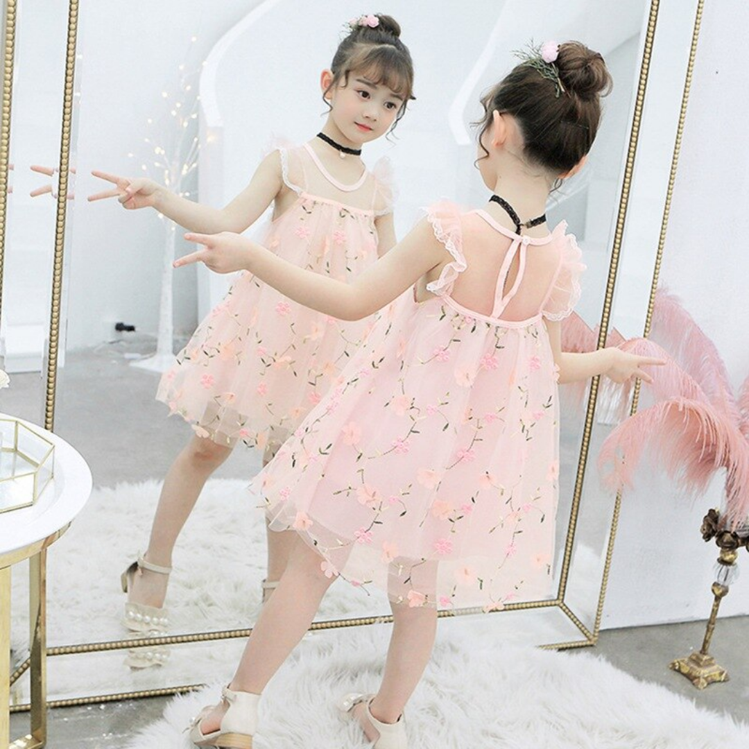 Dieses Sommerkleid für Mädchen mit Flügelärmeln und floraler Stickerei ist mit einem Hauch femininer Eleganz gestaltet. Der Rundhalsausschnitt, die Ärmellosigkeit und das knielange Design mit gemusterter Blumenstickerei lassen Ihre kleinen Mädchen noch modischer und süßer aussehen. Lassen Sie Ihre Mädchen dieses Kleid zu ihrer Geburtstagsparty oder zu jedem anderen wichtigen Anlass tragen – die richtige Wahl für Sommermode!