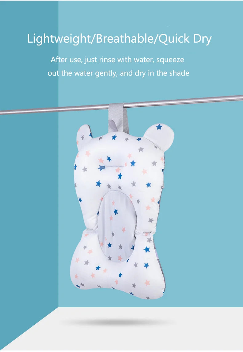 Made with your baby's comfort in mind, our bath support mat features a plush cloth material that gently cushions your little one's delicate skin. Its foldable design allows for easy storage and portability, while the anti-slip base ensures stability and security during bath time.