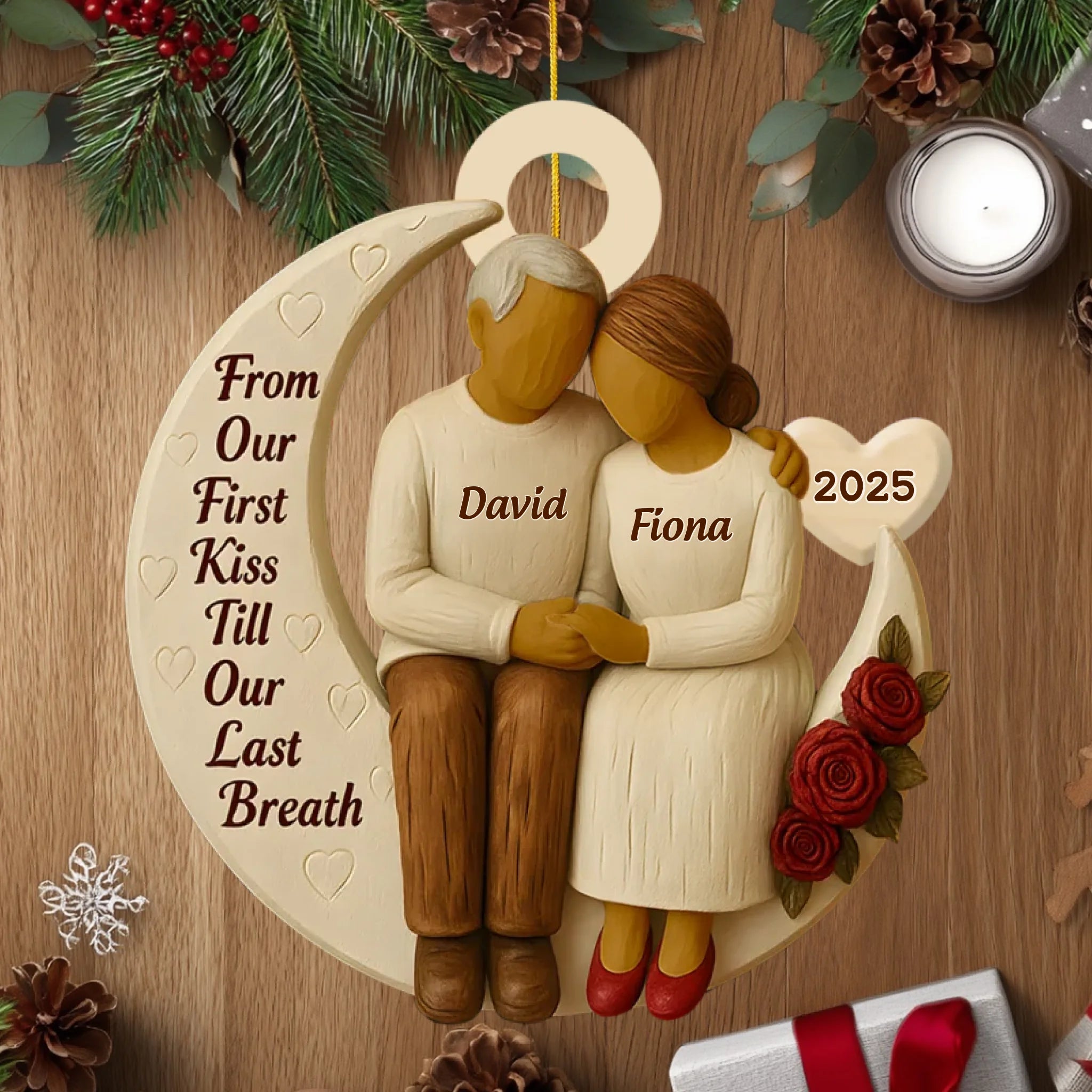 From Our First Kiss Till Our Last Breath – Personalized Wooden Couple Ornament – Romantic Gift for Couples, Wedding, or Anniversary