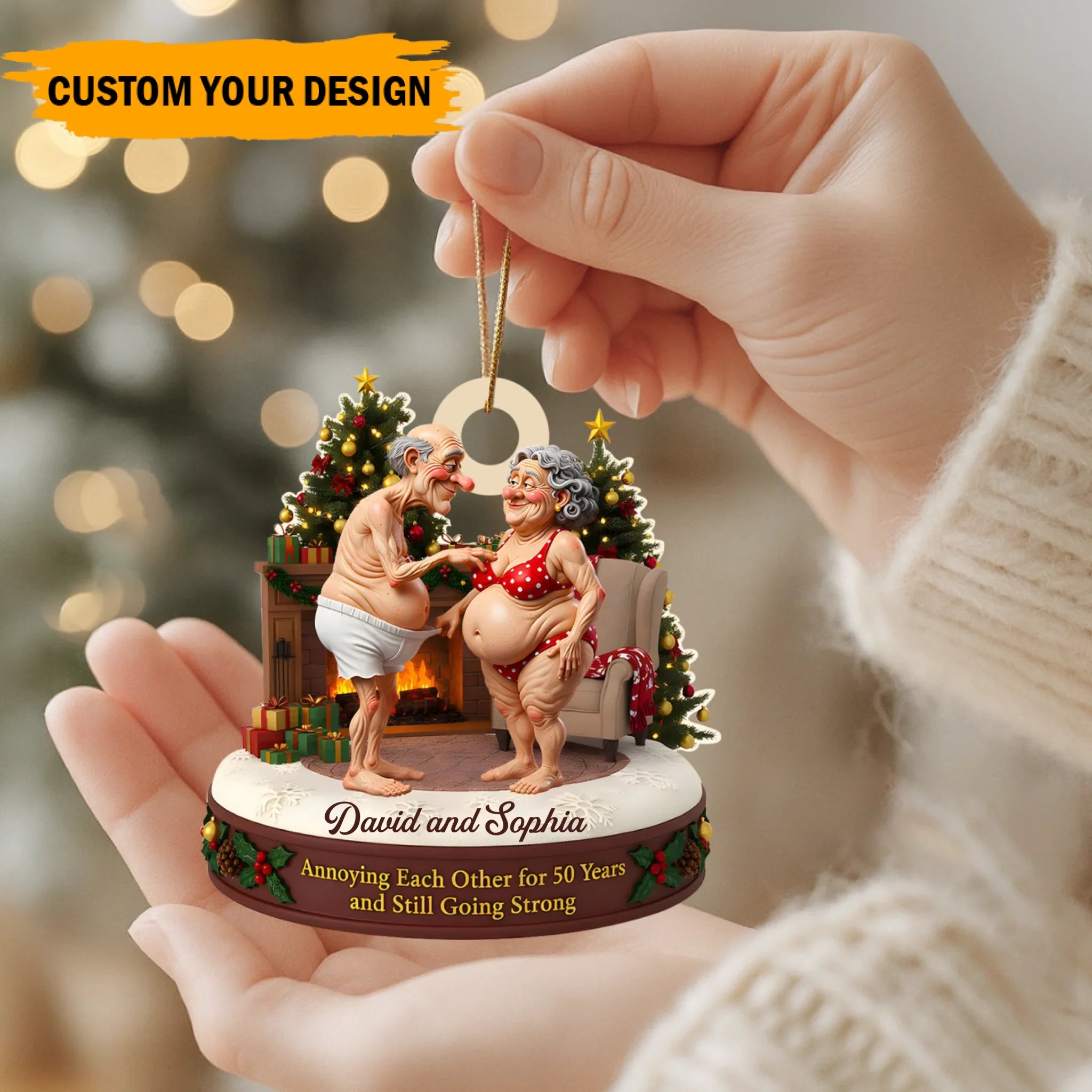 Celebrate love, laughter, and a lifetime of playful teasing with this Personalized Funny Couple Ornament!