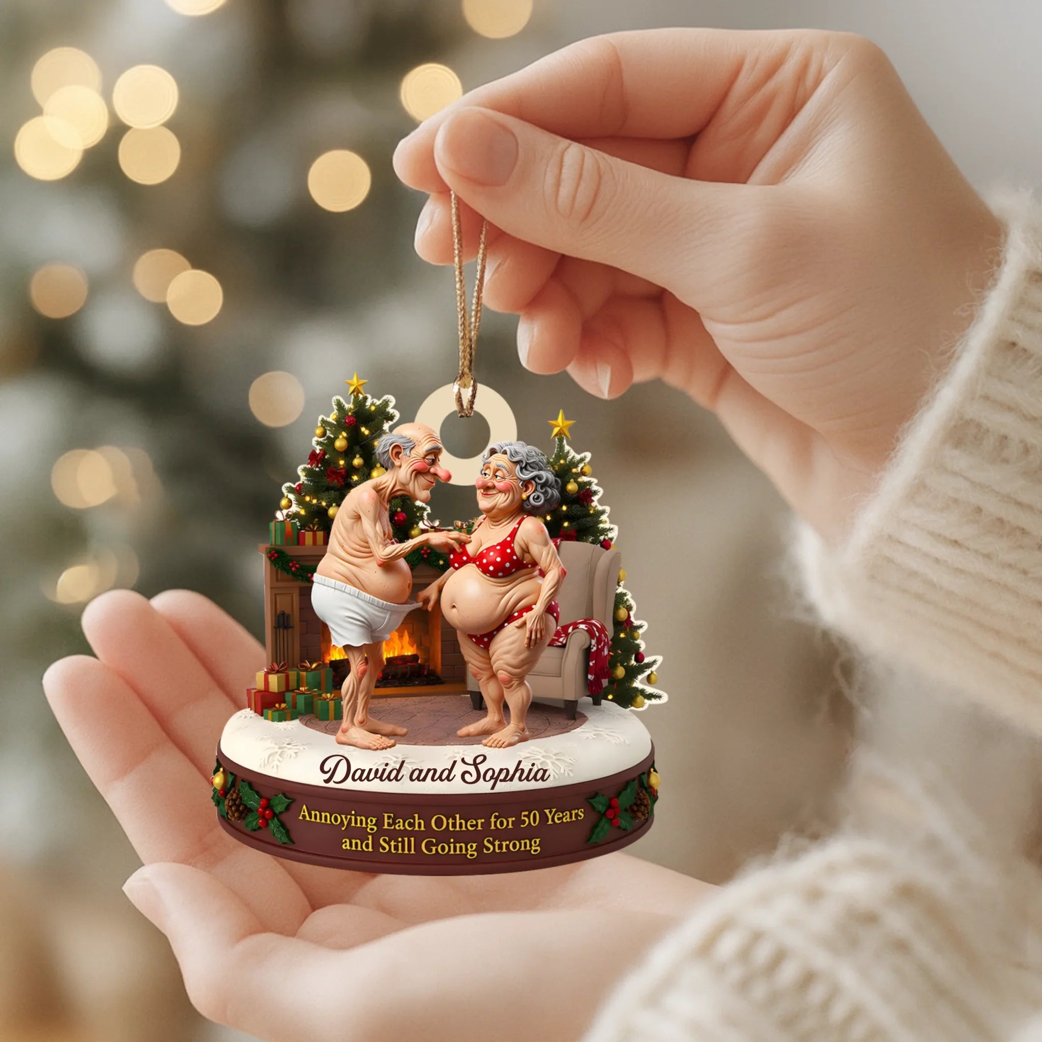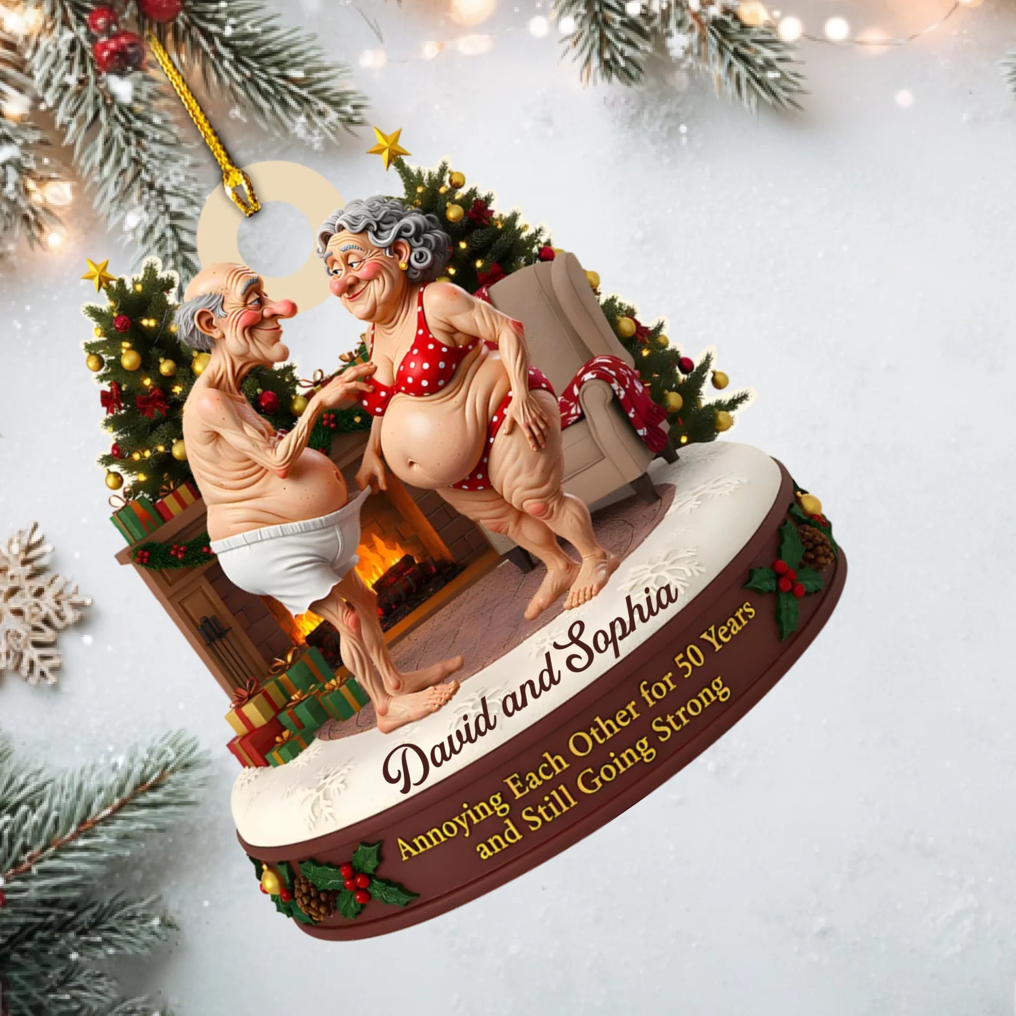 Personalize it with your couple’s names and character skin tones to make it a truly unique keepsake that perfectly reflects your relationship’s fun and loving spirit. Whether it’s a Christmas gift, anniversary surprise, or just a reminder of your silly bond, this ornament will bring a smile every time you see it.