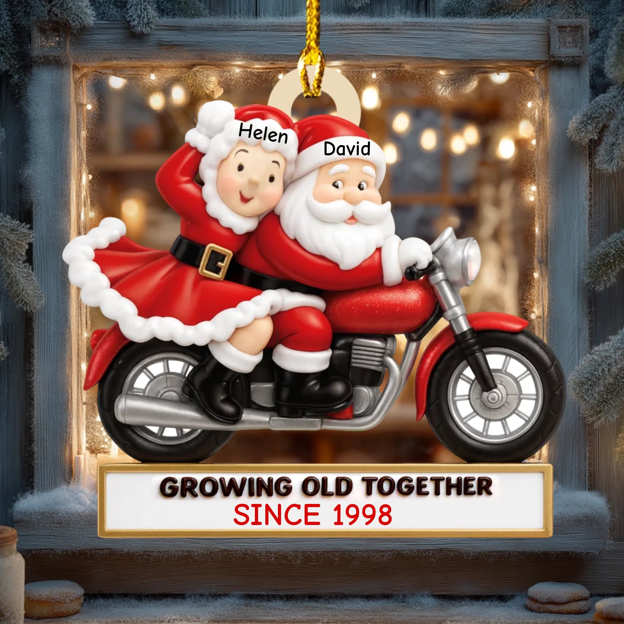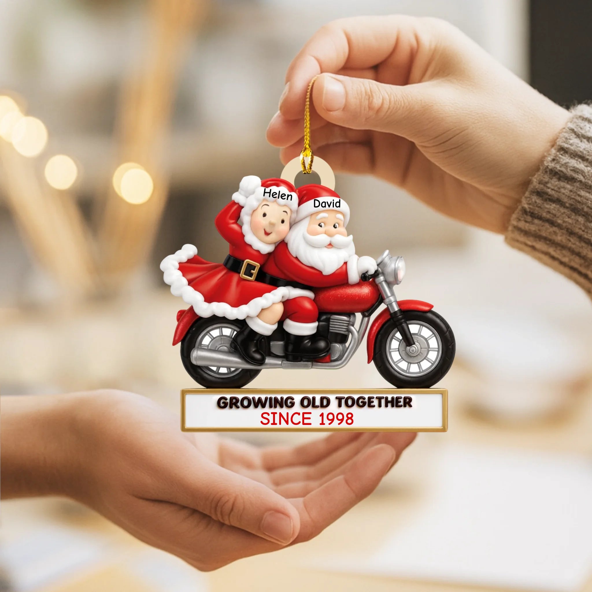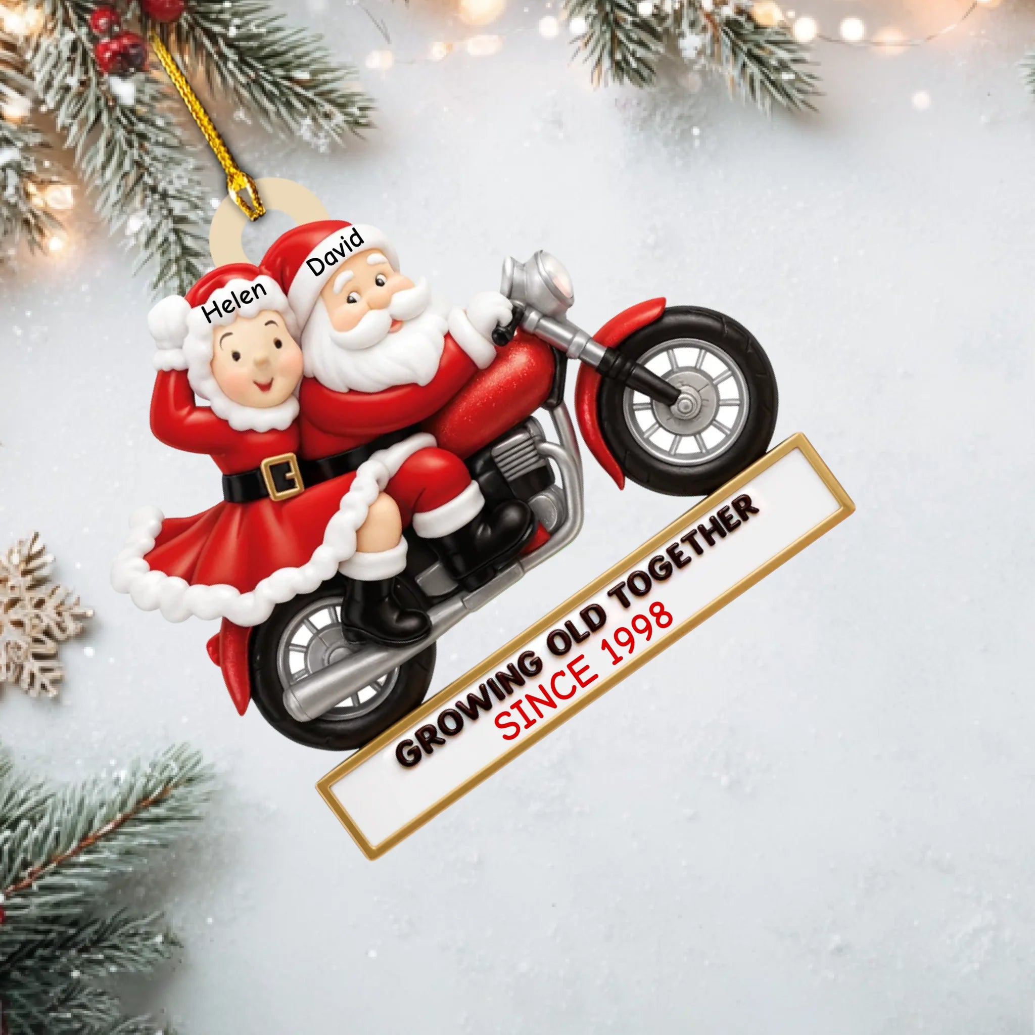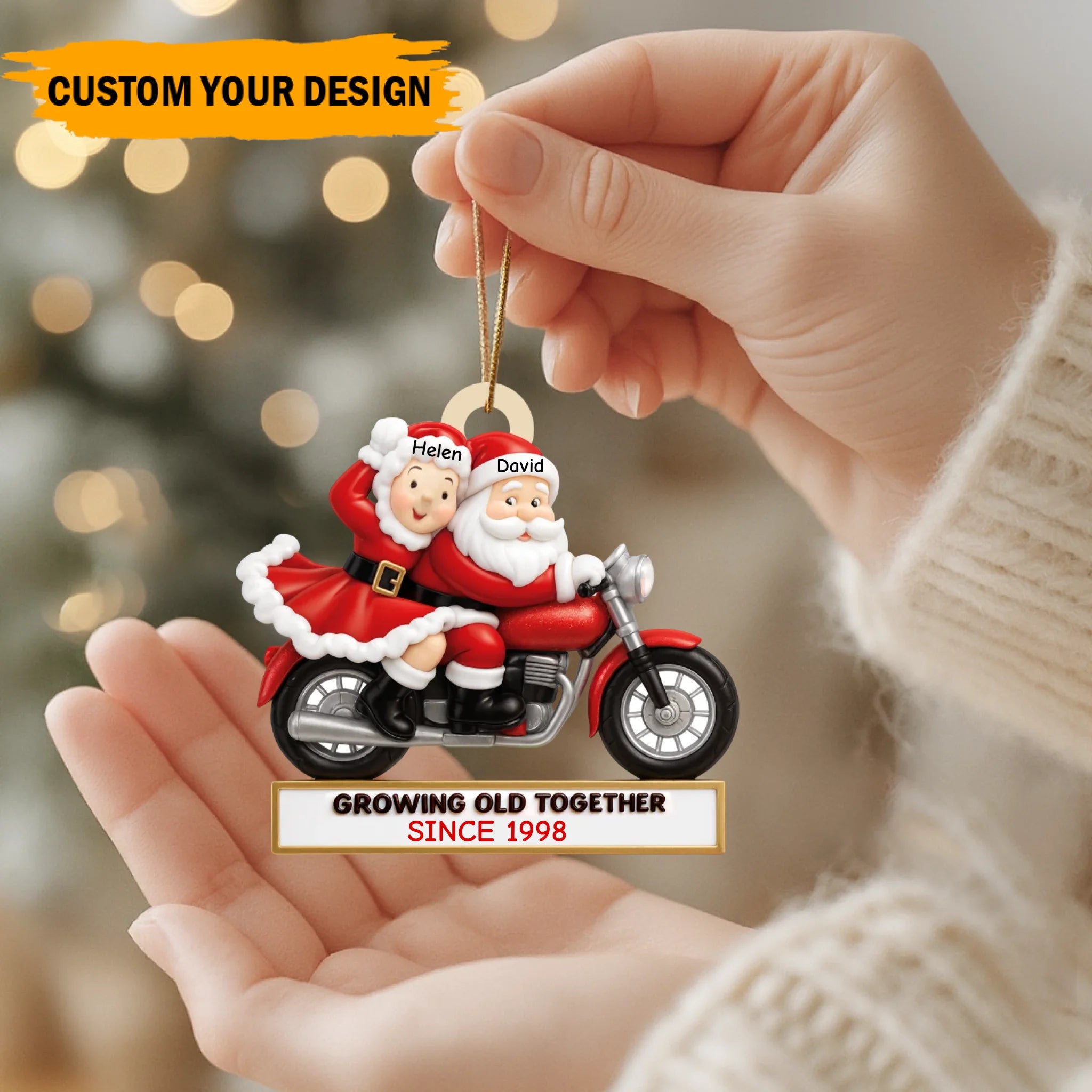 Celebrate the holiday season with joy, laughter, and love through our Personalized “Funny Santa Claus Couple” Christmas Ornament. Designed with a charming and humorous Santa couple riding together, this ornament brings a playful holiday spirit to your home. With fully customizable details — names, skin tones, and anniversary year — it becomes a one-of-a-kind keepsake that reflects your unique relationship.