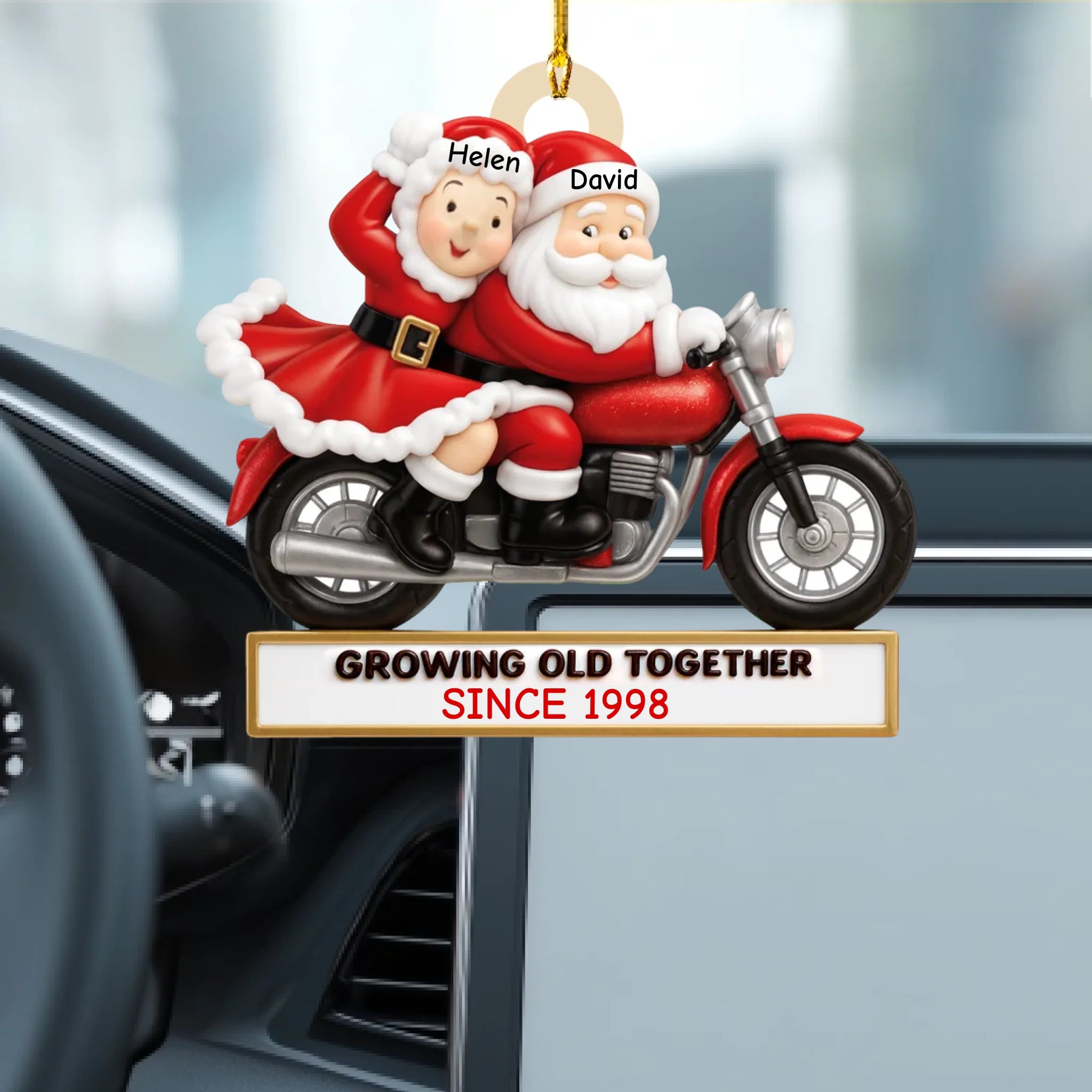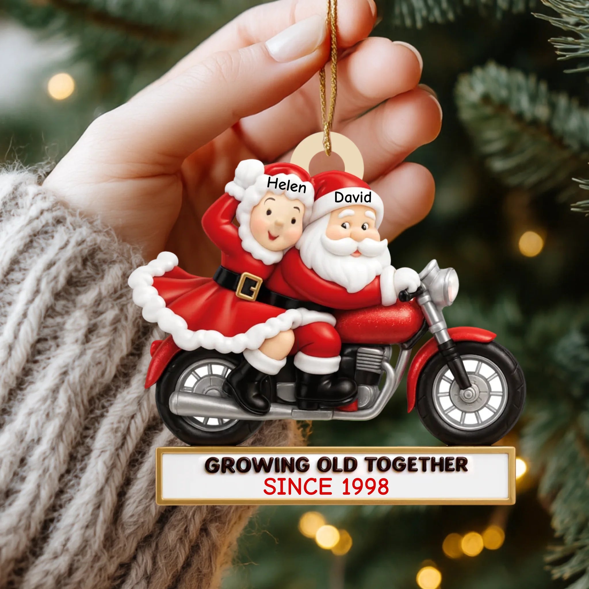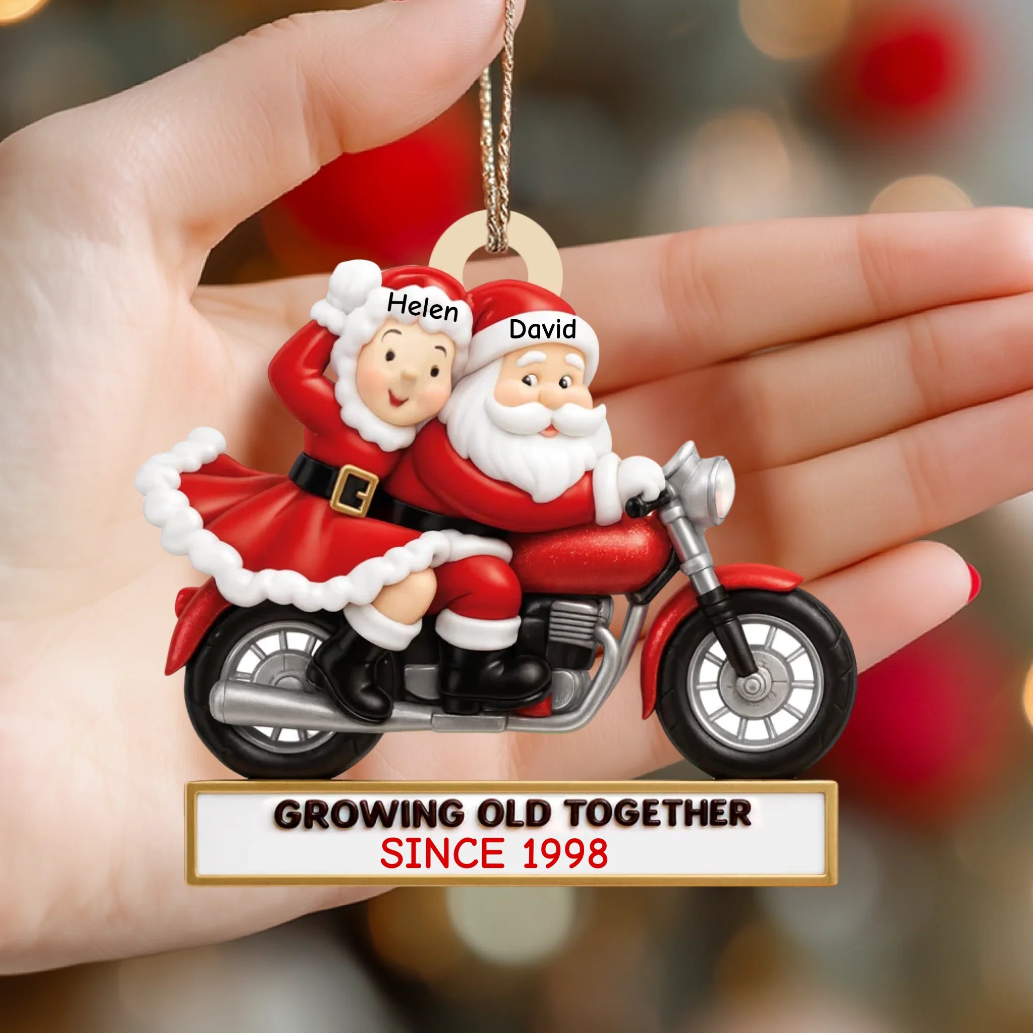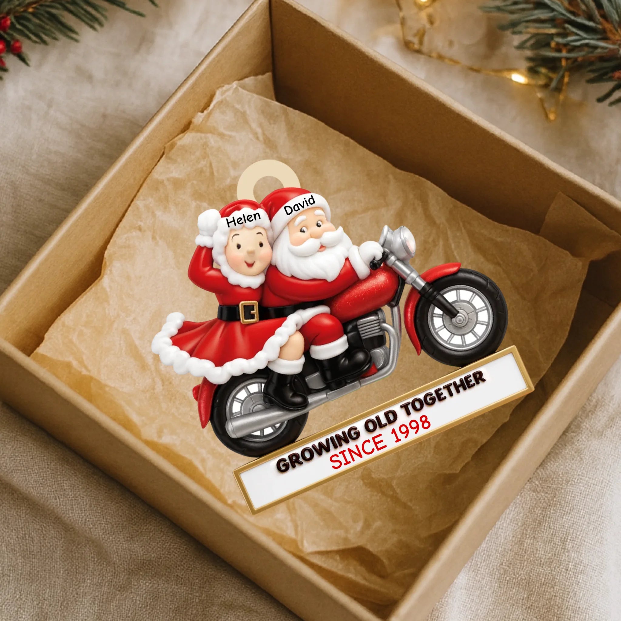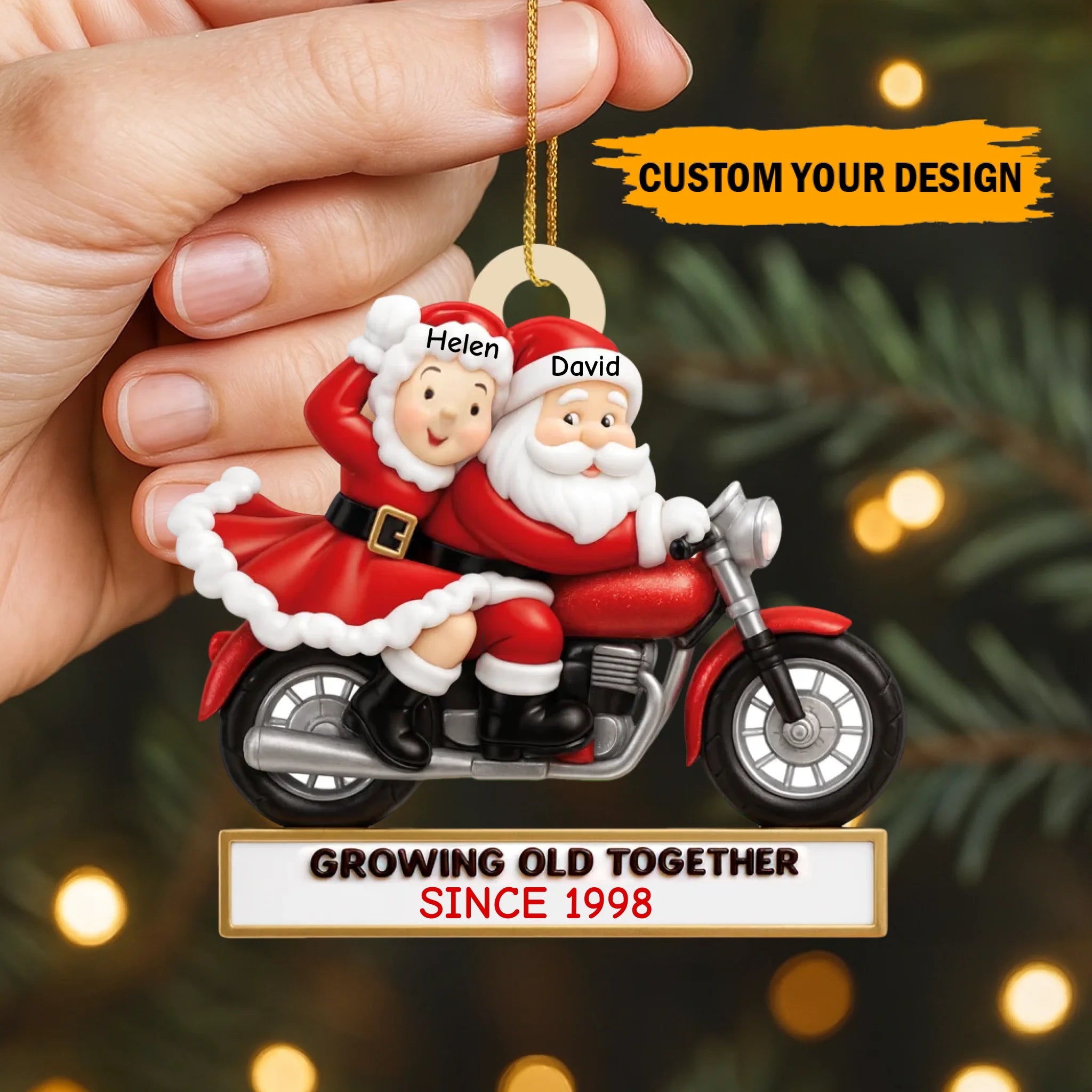 Celebrate the holiday season with joy, laughter, and love through our Personalized “Funny Santa Claus Couple” Christmas Ornament. Designed with a charming and humorous Santa couple riding together, this ornament brings a playful holiday spirit to your home. With fully customizable details — names, skin tones, and anniversary year — it becomes a one-of-a-kind keepsake that reflects your unique relationship.