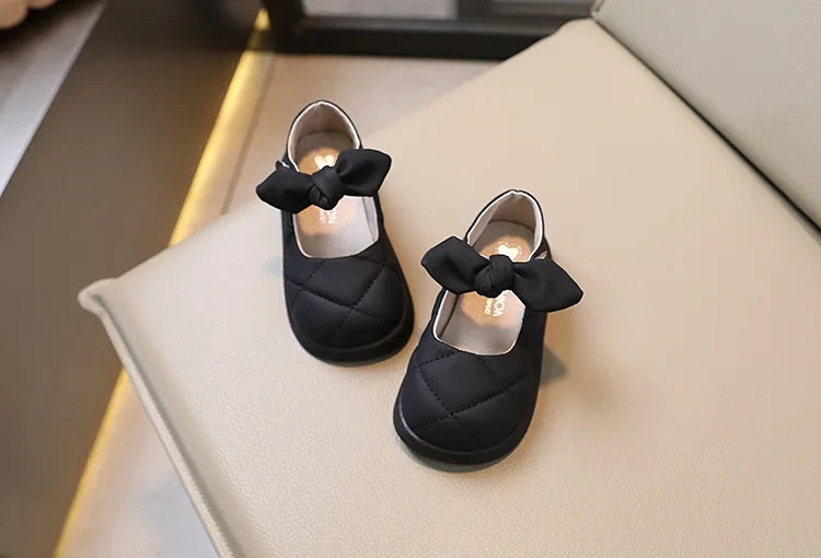 Mädchen-Lederschuhe mit Schleife: Weicher Frühlings-/Herbststil