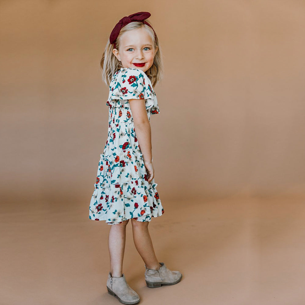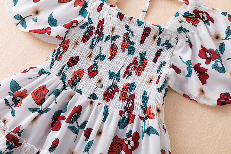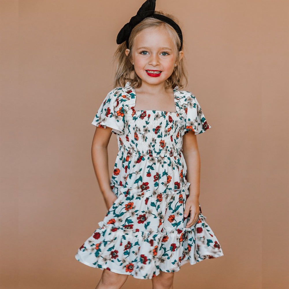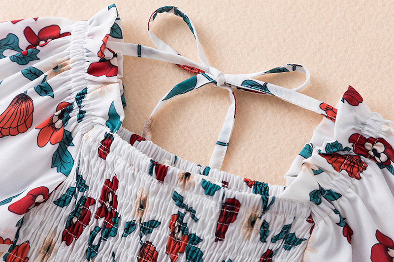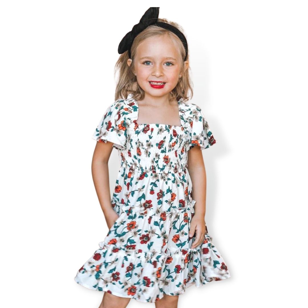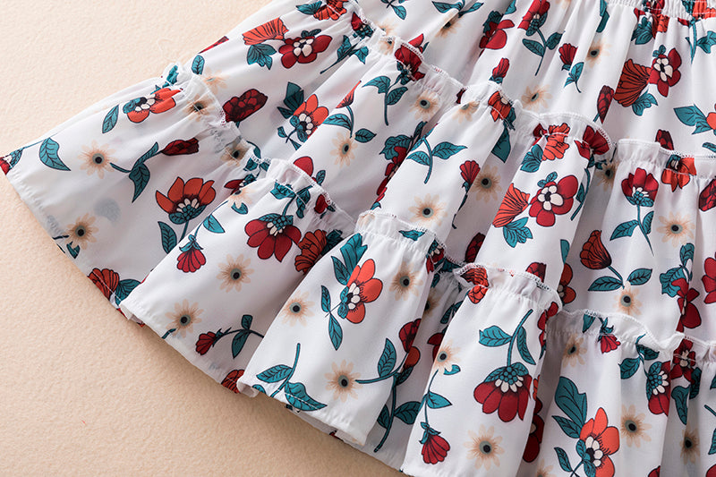 Vestido Casual Rojo de Flores de Verano para Niñas, de Manga Corta
