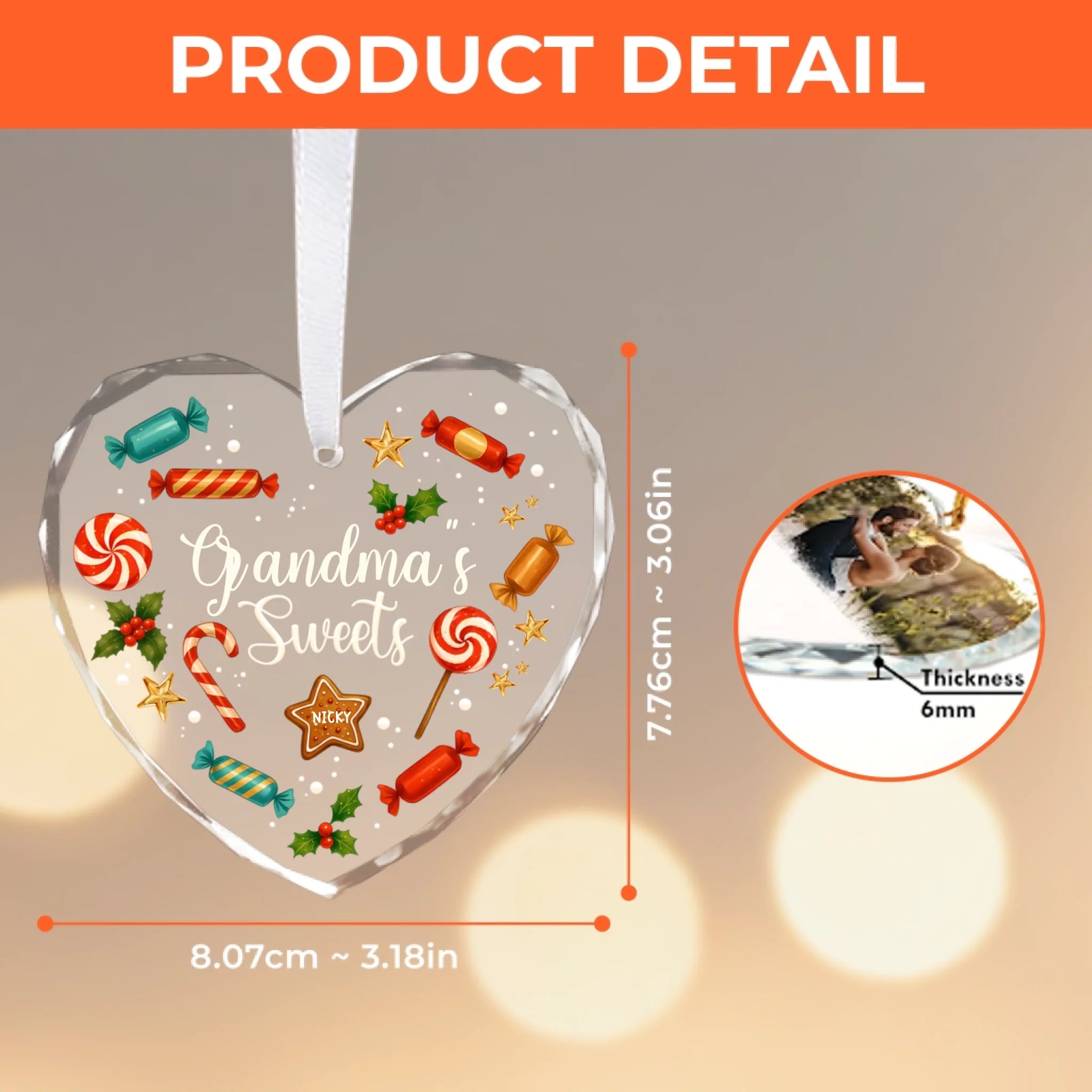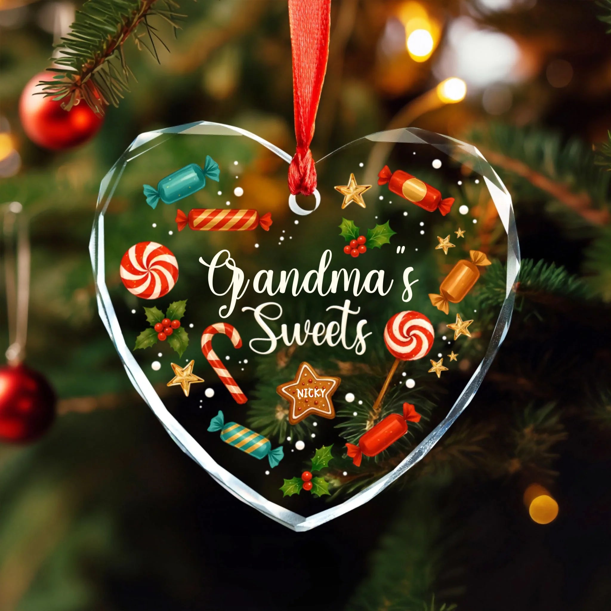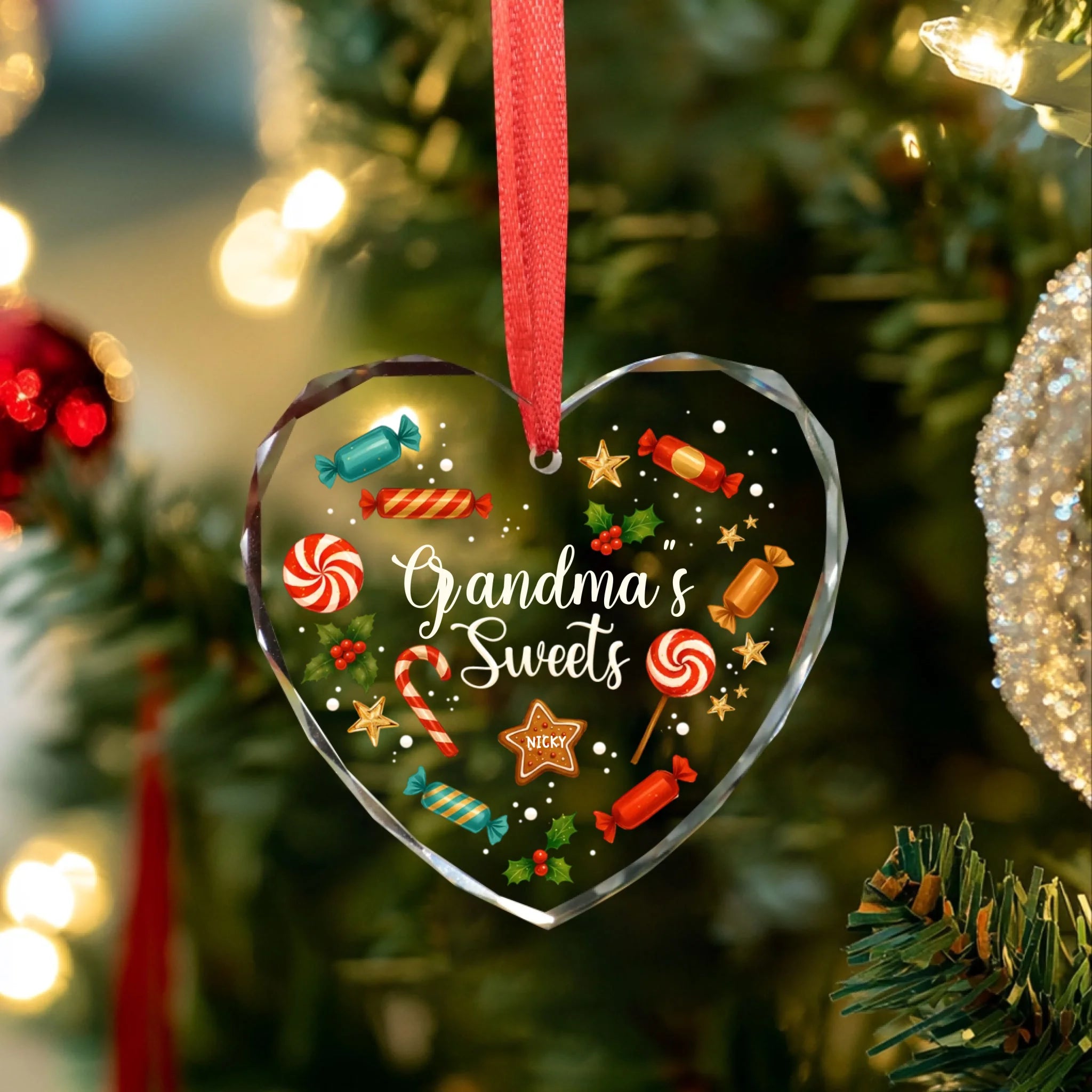 Feiern Sie die süßeste Verbindung zwischen Oma und ihren Kleinen mit unserem Personalisiertes „Omas Süßigkeiten“ Weihnachts-Herzglasornament! 🍬💖