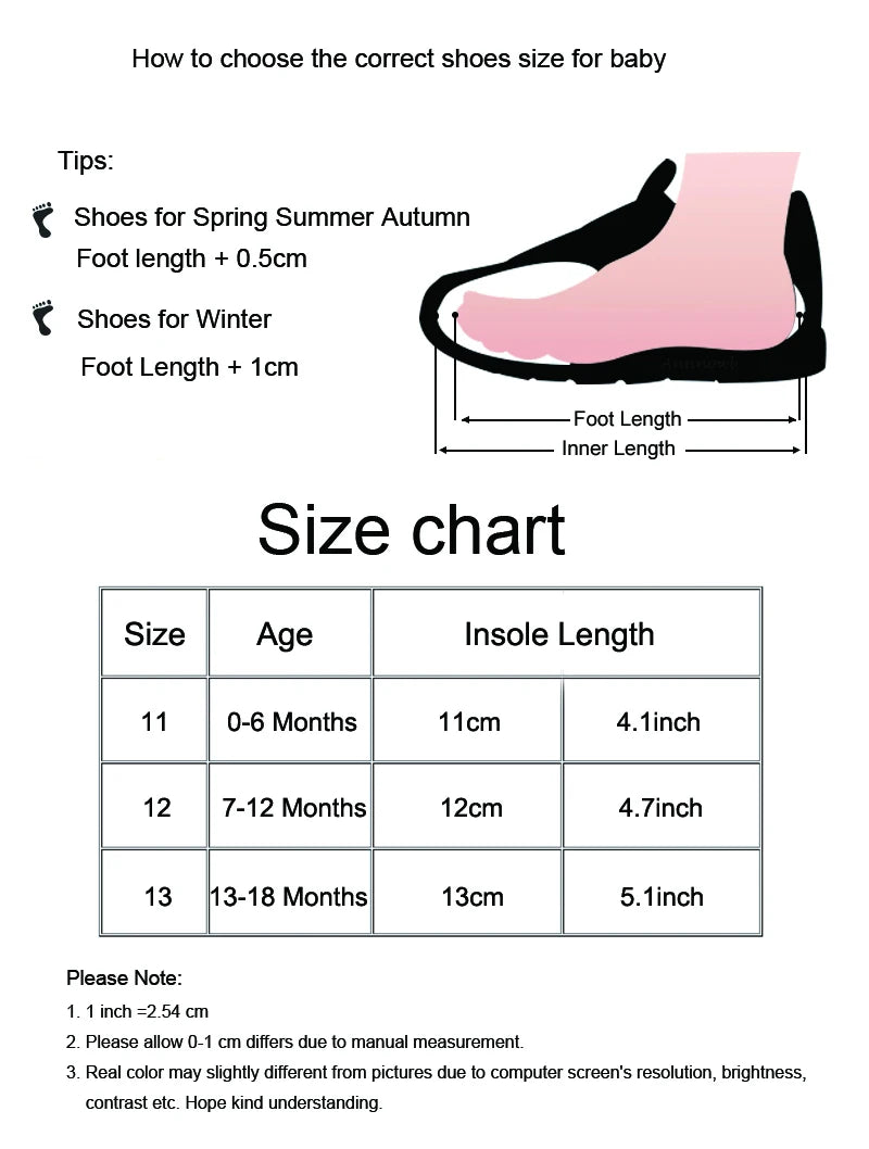 Mit einer weichen BAUMWOLL-Laufsohle und einem Obermaterial aus PU bieten diese Schuhe eine sanfte und stützende Basis für die sich entwickelnden Füße Ihres Babys.