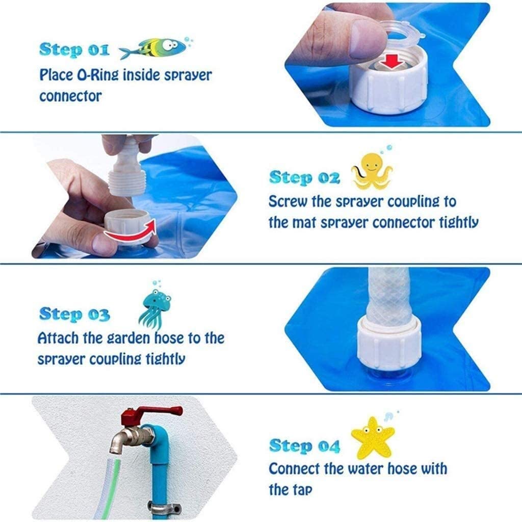 Jeden Sommer können Sie es kaum erwarten, ans Meer zu fahren, um sich abzukühlen an heißen Sommertagen, aber was tun in der Zwischenzeit? Ihre Kinder möchten nach draußen gehen, aber es wird nach ein paar Minuten zu heiß! Besiegen Sie die Hitze mit dieser lustigen aufblasbaren Wassersprinkler-Spielmatte!