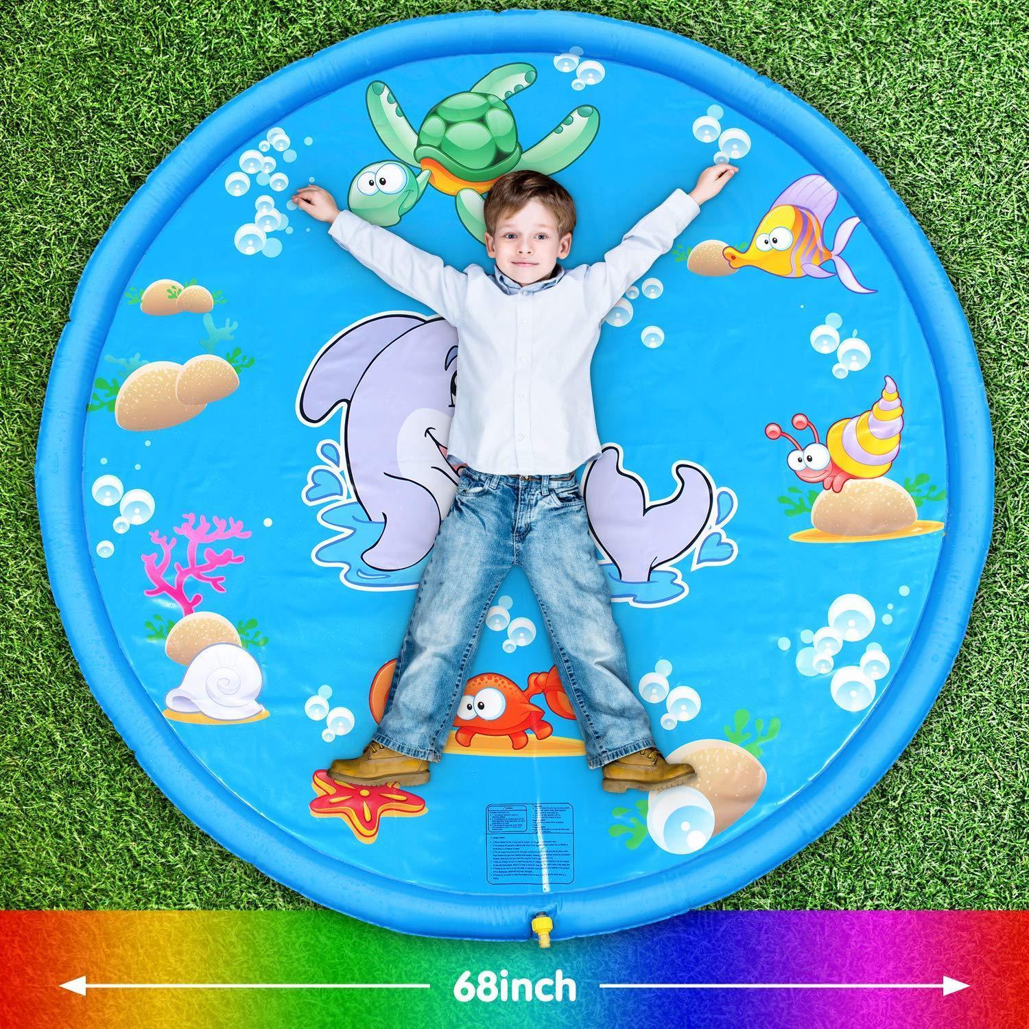 Lassen Sie Ihre Kinder draußen spielen und beobachten Sie, wie sie Spaß haben, während diese Spritzmatte Wasser überall versprüht! Diese Matte ist eine gute Alternative zu traditionellen Swimmingpools! Es ist eine großartige Möglichkeit, heiße Tage im Freien zu verbringen !