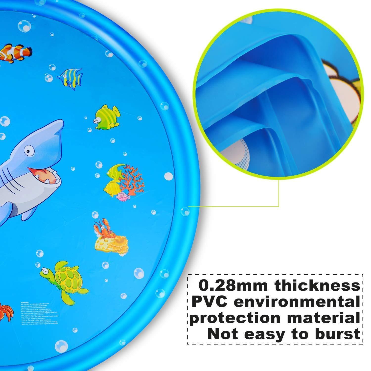 SICHER PLANSCHEN – Halten Sie Kinder kühl und sicher mit dem Kinder-Spritzpad. Spaß in der Sonne… und im Schatten, dieses flache Planschbecken und Wassersprinkler verspricht kompromisslose Qualität und ist BPA- und phthalatfrei.