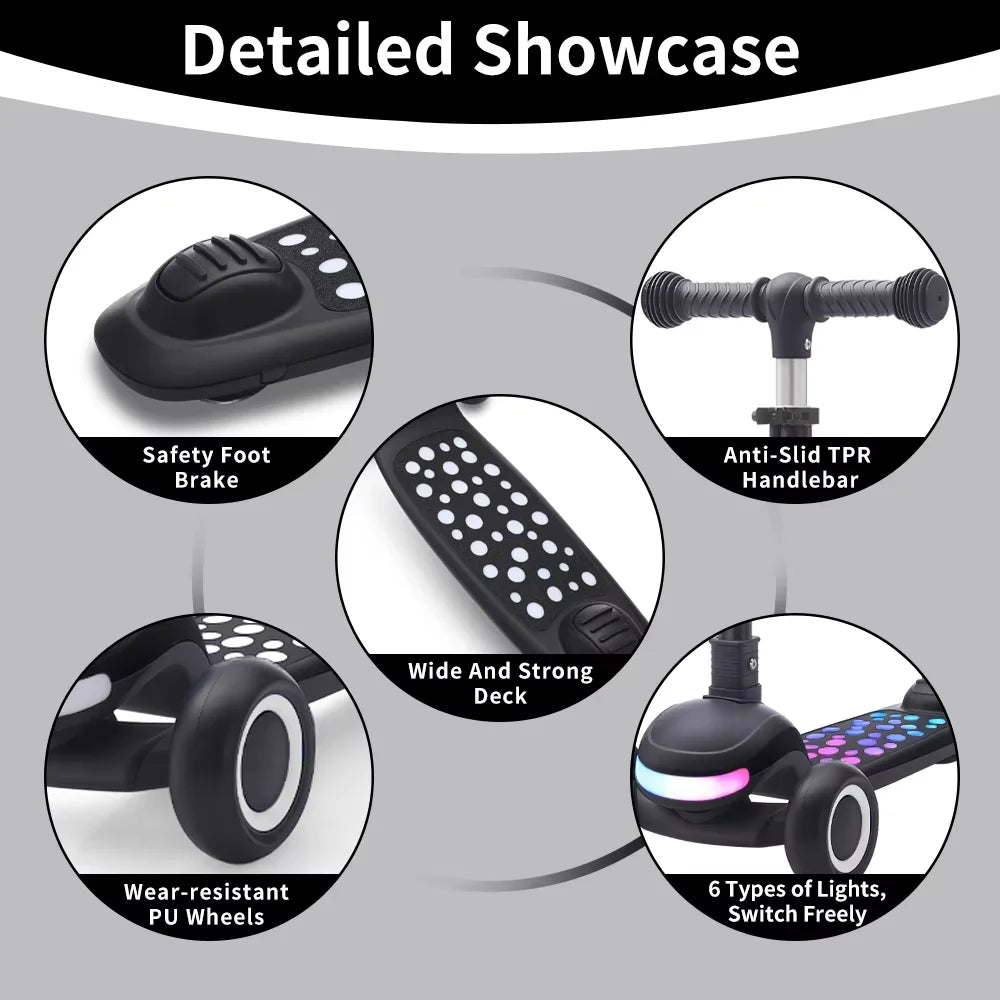 This 3-wheel scooter is the perfect choice for those who value style, comfort, and safety in movement. Combining stunning light effects, an adjustable height, and a stable design, it makes every ride unforgettable while simultaneously boosting crucial developmental skills like Balance Training, Physical Training, and Brain Development.