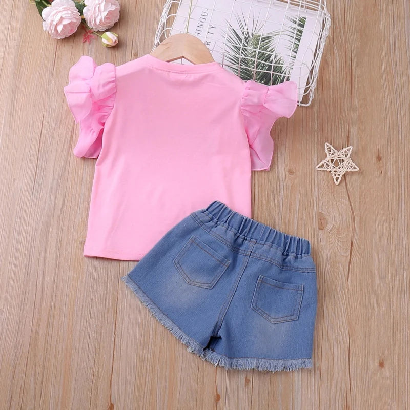 Willkommen zu unserer Kollektion mit Kinderkleidungssets für Mädchen. Damit Ihre kleine Prinzessin den ganzen Sommer über modisch und bequem ist. Die Sets aus einer Baumwoll-Polyester-Mischung bieten Mädchen von 2 bis 8 Jahren Strapazierfähigkeit und Atmungsaktivität.