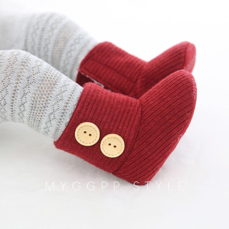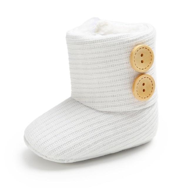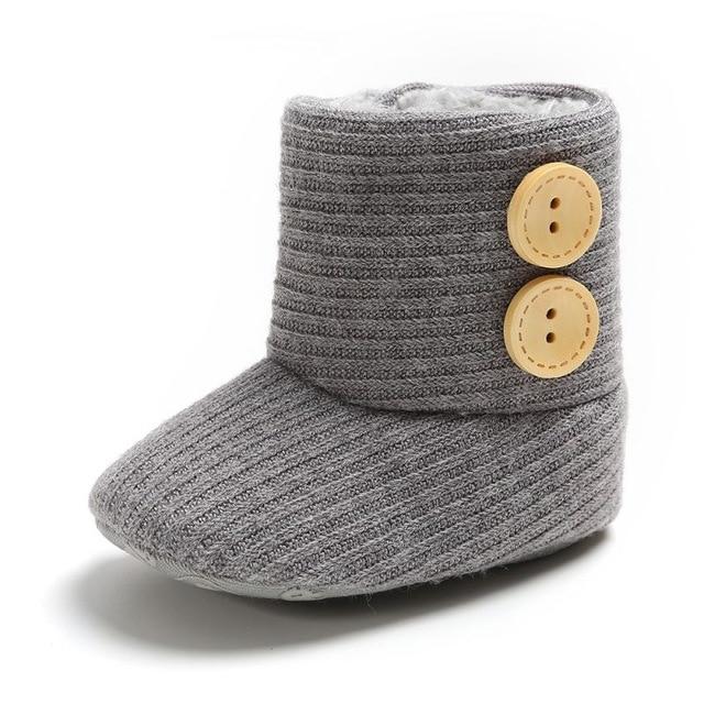 Gestrickte Knöchelstiefel sind ein Genuss für Neugeborene und Laufanfänger. Sie sind bequem mit einer weichen Sohle, die dem Baby eine flexible Fußbewegung ermöglicht. Sie verfügen über Klettverschlüsse für ein unkompliziertes An- und Ausziehen. Der Knöchelbereich mit dem Riemenverschluss ist innen mit Kunstfell gefüttert, was ihn weich macht, Wärme spendet und Hautreizungen beim Baby verhindert. Die Laufsohle ist rutschfest und unterstützt einen festen Halt für Laufanfänger. Diese Stiefel sind in Farben erhältlich, die sich problemlos mit jedem Outfit kombinieren lassen. Ob das Baby im Bettchen liegt oder im Park spielt, es kann diese Stiefelchen zusammen mit dem Outfit präsentieren.