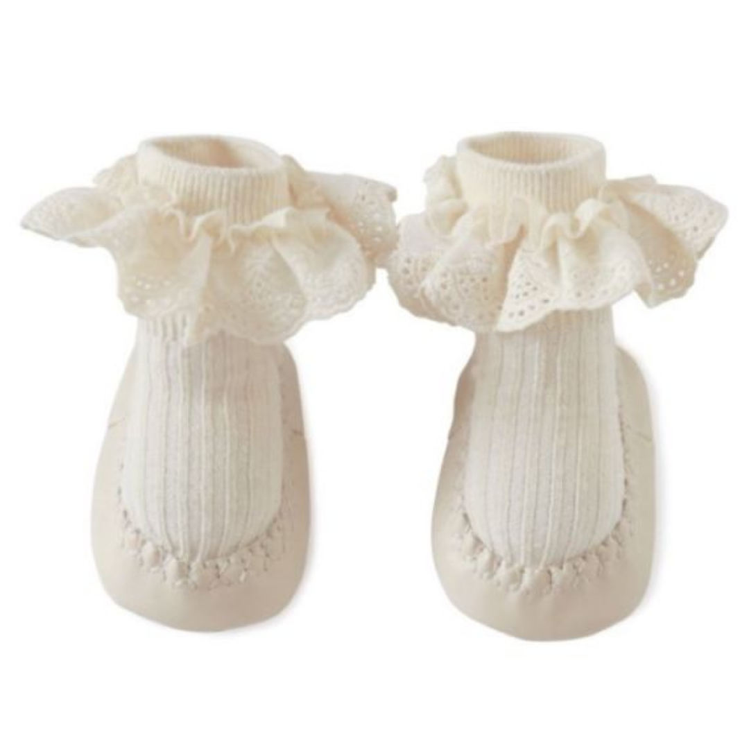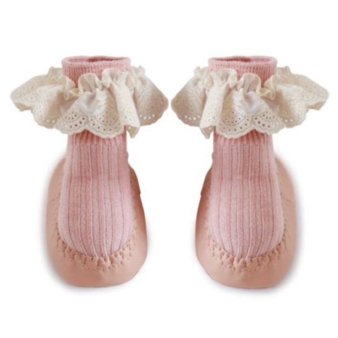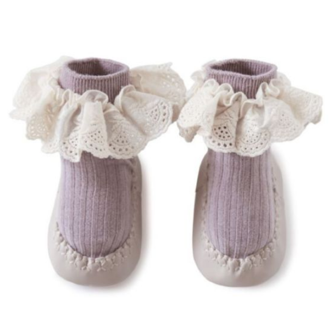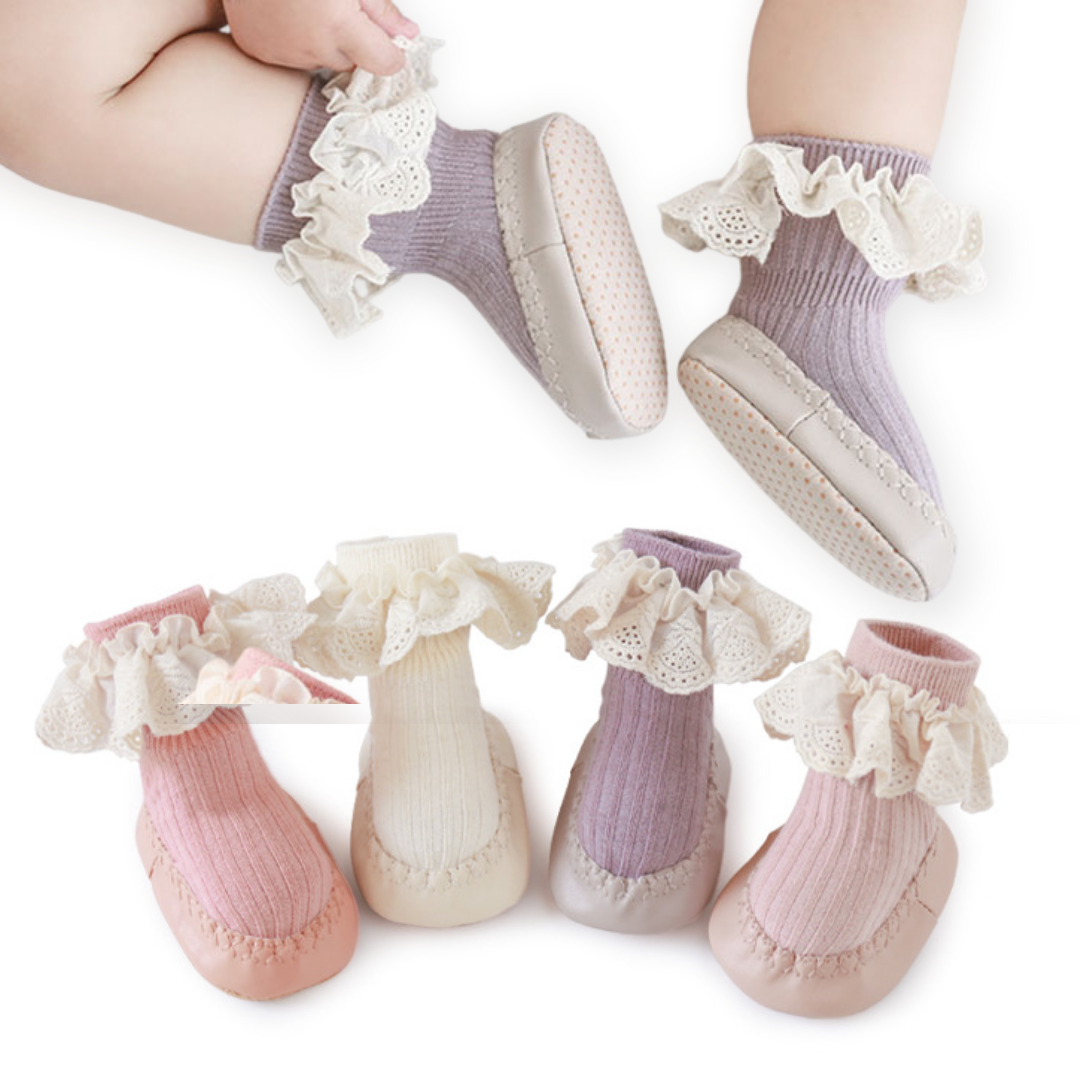 Des chaussures de marche bébé en coton doux à motifs dentelle – Chaussettes antidérapantes