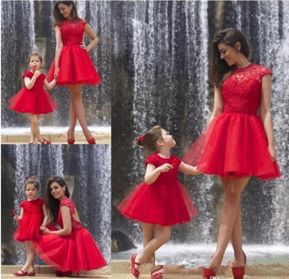 Vestido Cóctel Rojo de Encaje para Mamá e Hija