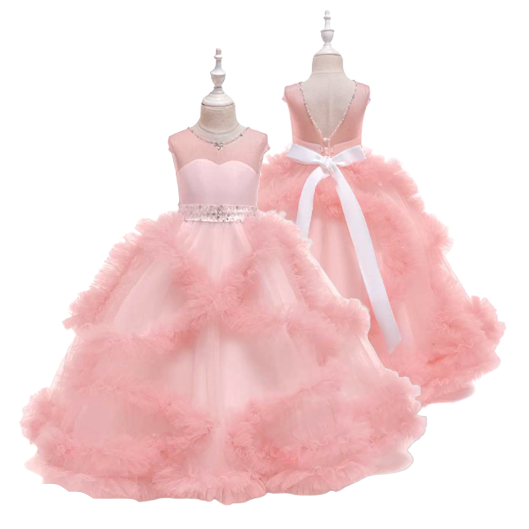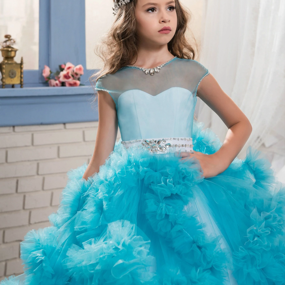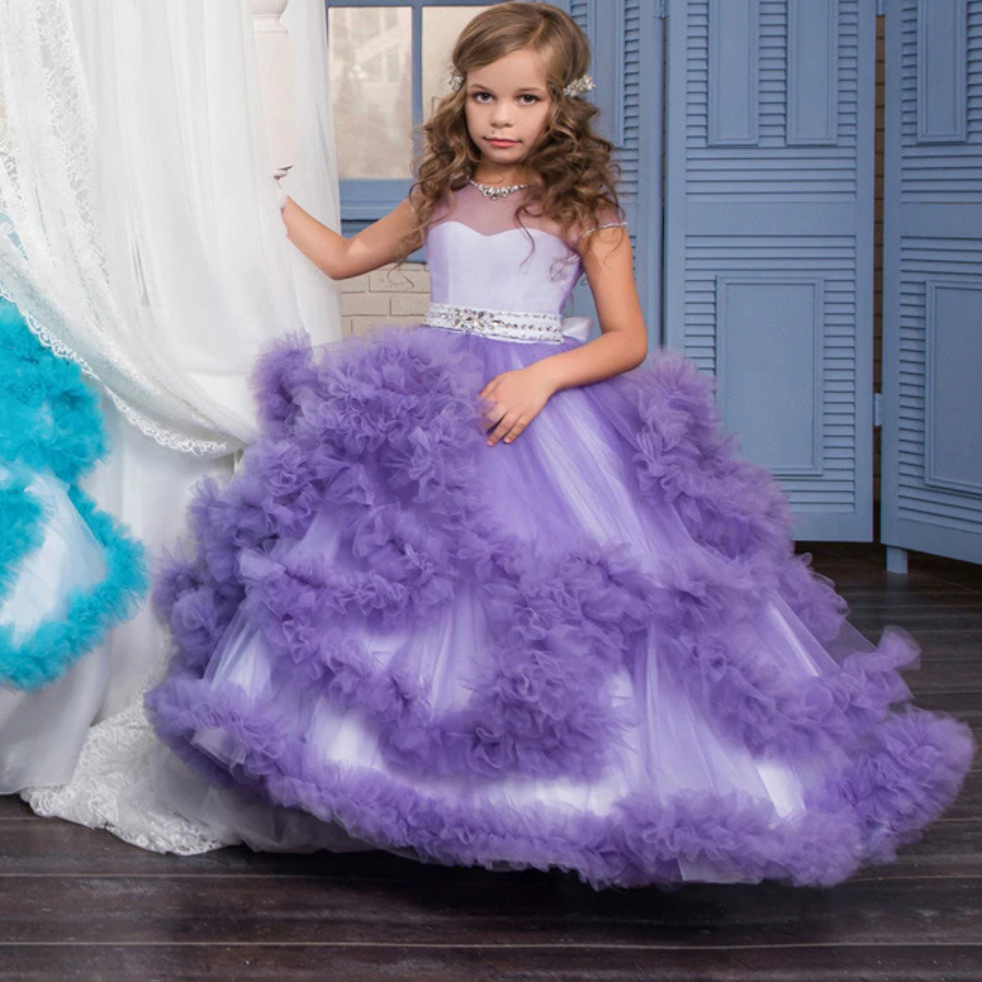 Lassen Sie Ihre Mädchen an ihrem besonderen Tag wie eine Prinzessin aussehen mit diesem wunderschönen Kleid. Dieses Prinzessinnen-Ballkleid mit Lagen aus Spitzenrüschen und Strass-Design ist das perfekte Kleid für Mädchen. Es kann zu jedem Anlass oder besonderen Event getragen werden.