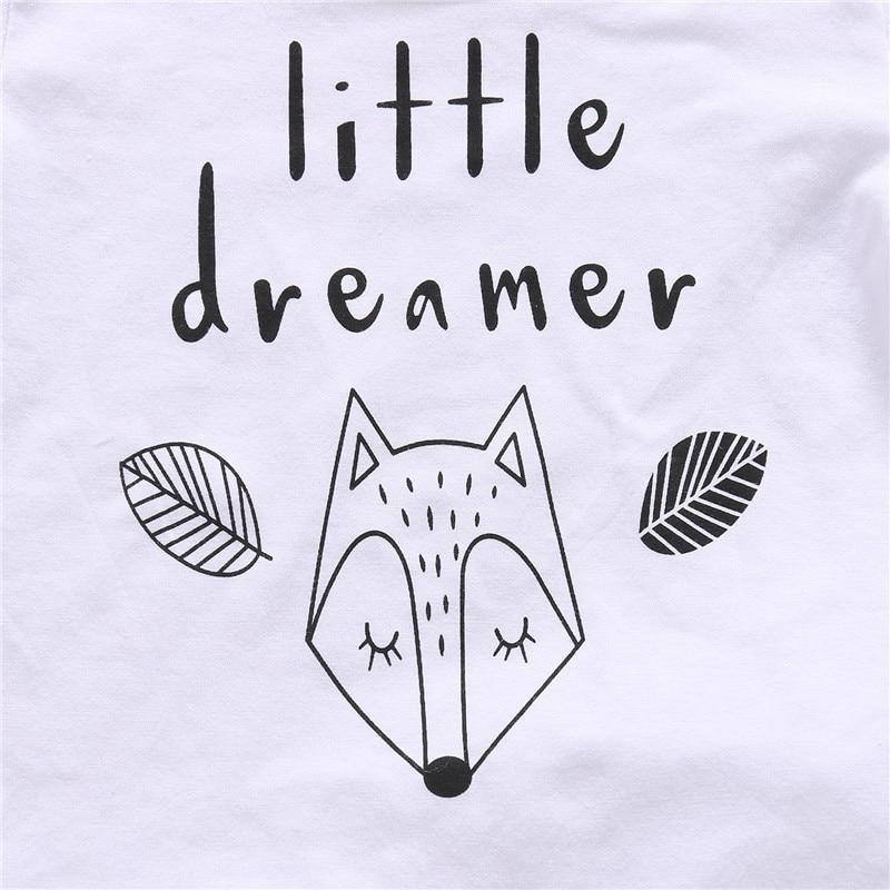 „Babys lächeln in ihren Träumen, während sie dem Flüstern der Engel lauschen.“ Die Schlafenszeit der Babys ist sehr wichtig für ihr körperliches und geistiges Wachstum. Dieser Anzug besteht aus weichem Baumwollstoff, der sanft zur Haut Ihres Babys ist. Das Shirt hat einen niedlichen Aufdruck eines schlafenden Hirsches, über dem „little dreamer“ geschrieben steht. Die Hose ist ebenfalls mit einem bezaubernden Fuchs und Blättern bedruckt. Dieser Anzug ist speziell entworfen, um die Garderobe Ihres Babys zu bereichern.