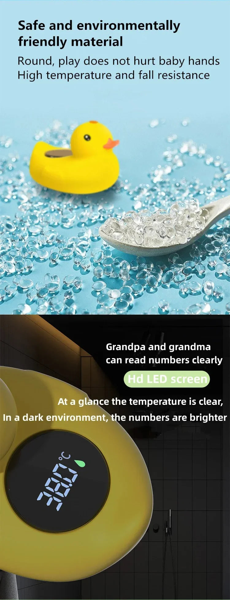 - Adorable Duck Shape: Shaped like a little yellow duck, this thermometer adds a fun and playful element to bath time, delighting both parents and babies alike.