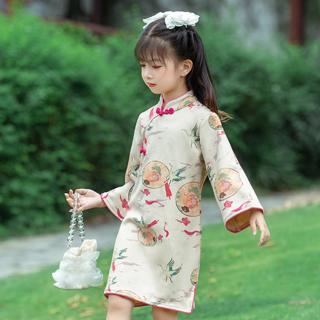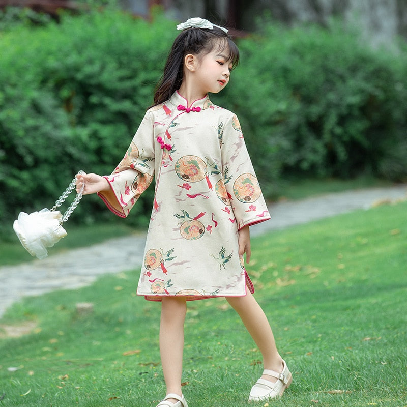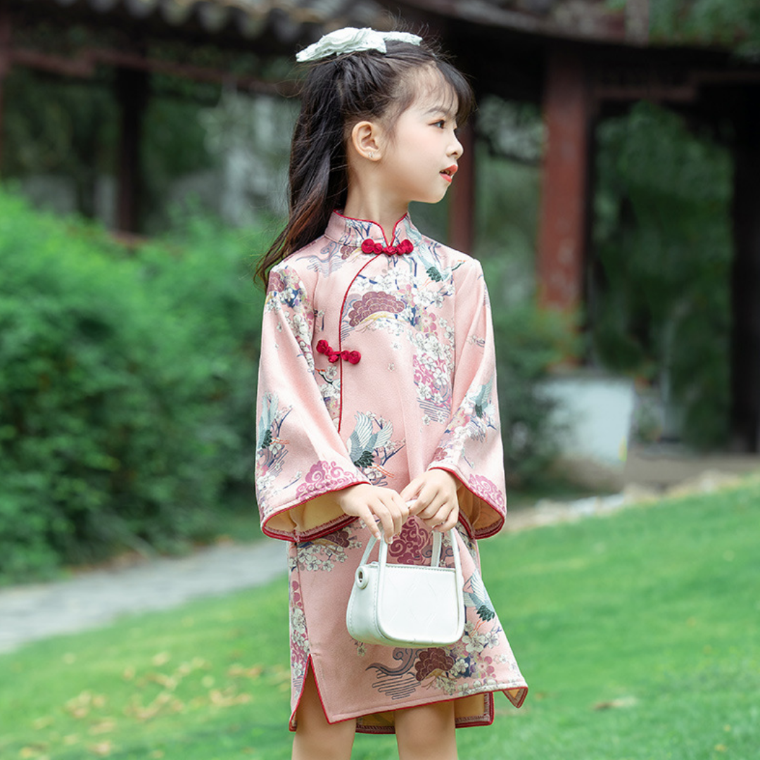 Dieses langärmlige Cheongsam-Kleid im chinesischen Prinzessinnenstil besteht aus hochwertigen Stoffen, es ist angenehm und atmungsaktiv zu tragen. Die Kleidung ist sehr weich und wird dir beim Tragen viel Komfort bieten. Das perfekte und wunderschöne Kleid für deine Mädchen.