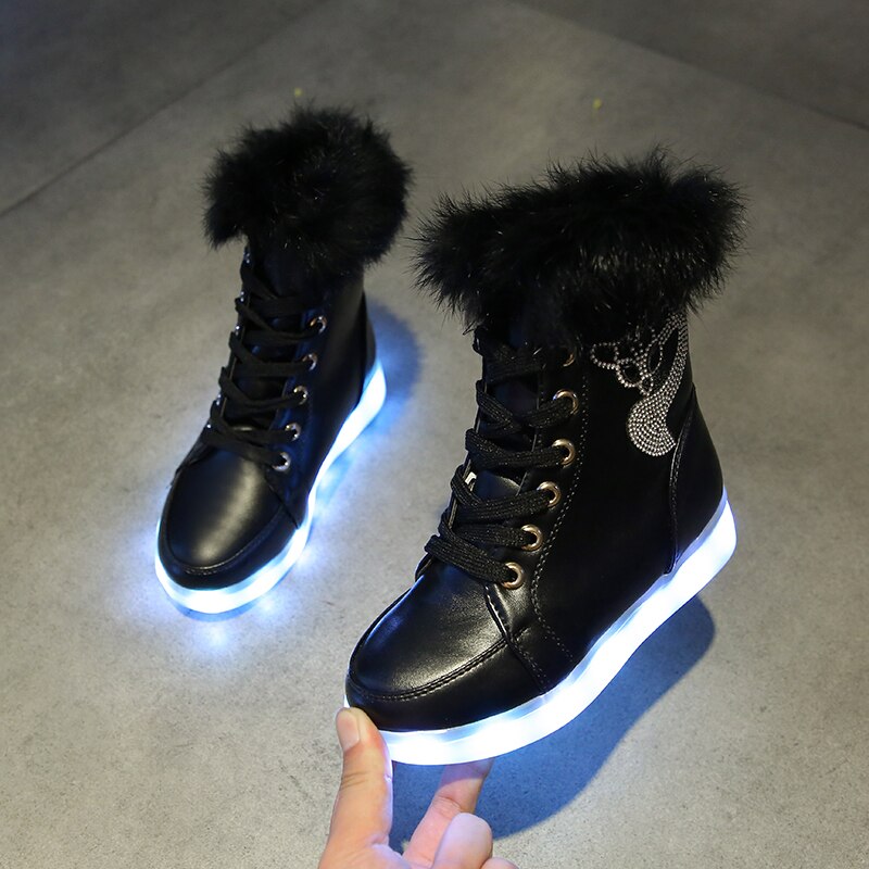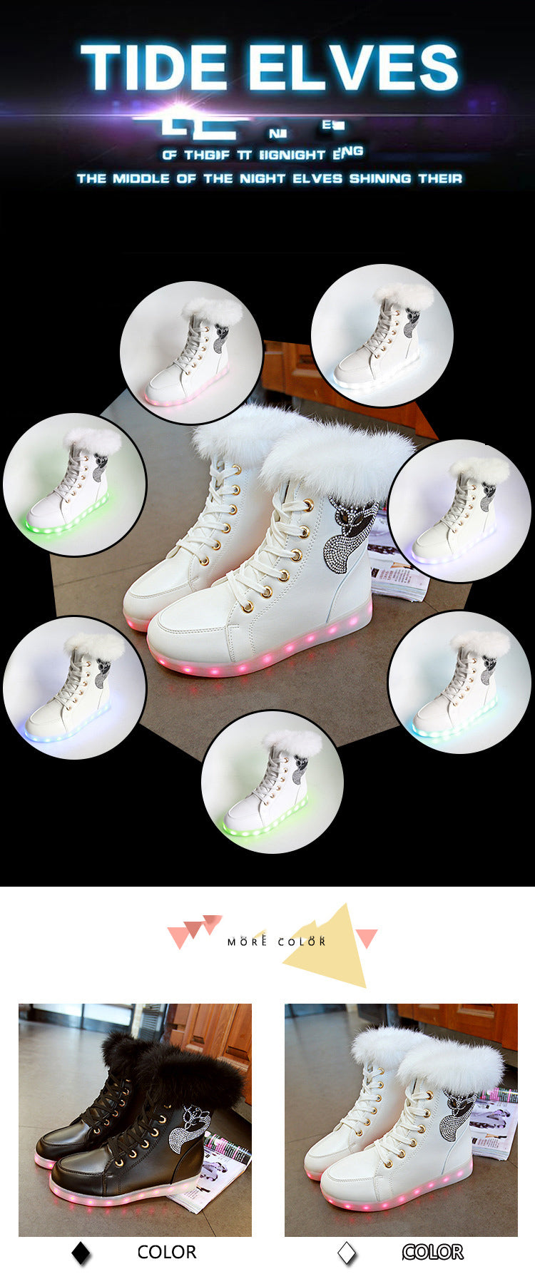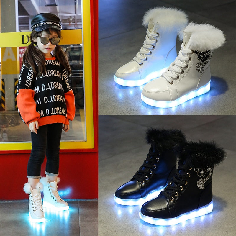 Ihre modebewussten Töchter möchten immer gut aussehen und werden fast immer die trendigsten und auffälligsten Stücke wählen, die sie finden können. Diese Leuchtenden Stiefeletten werden Ihre kleinen Mädchen mit ihrem Fell-Detail und natürlich der auffälligen LED-Lichtsohle garantiert in den Mittelpunkt der Aufmerksamkeit rücken.