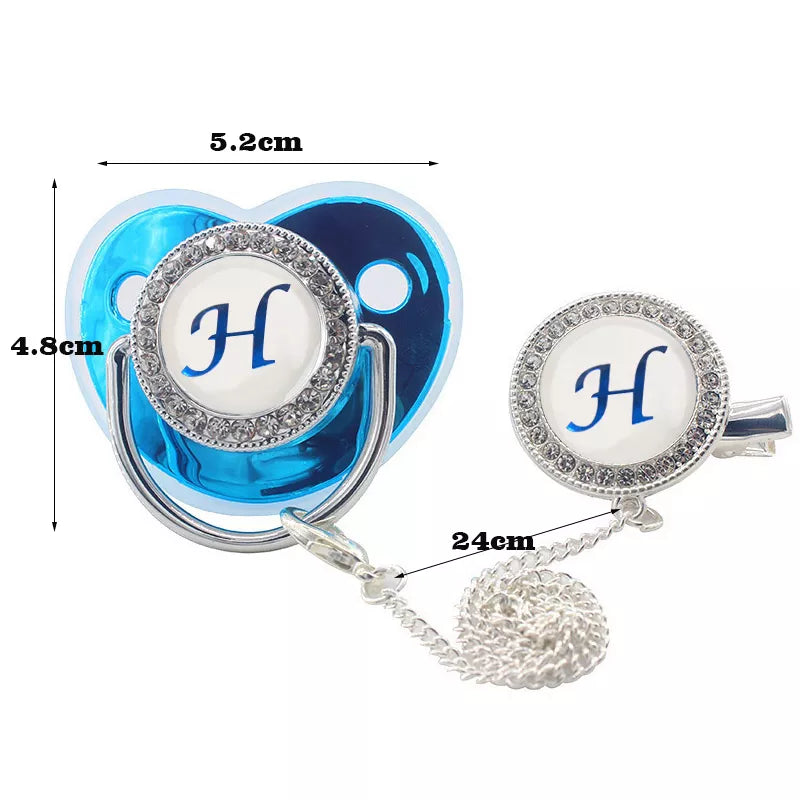 Gönnen Sie sich Luxus mit unserem exquisiten Luxus-Babyschnuller, verziert mit funkelnden blauen Strasssteinen. Dieser Schnuller ist nicht nur ein beruhigendes Accessoire für Ihr Baby, sondern auch ein Statement-Stück, das den Essentials Ihres Kleinen einen Hauch von Glamour verleiht.