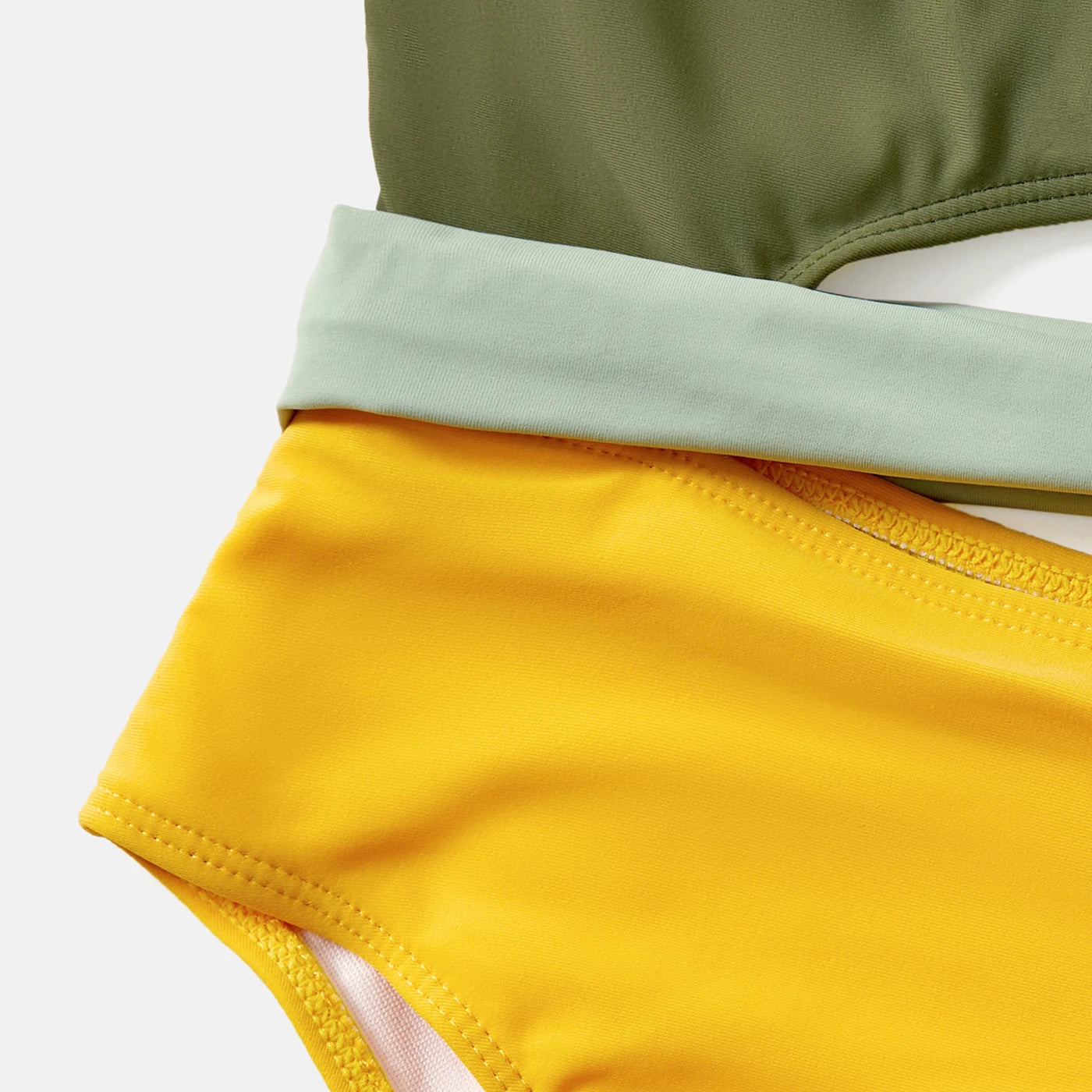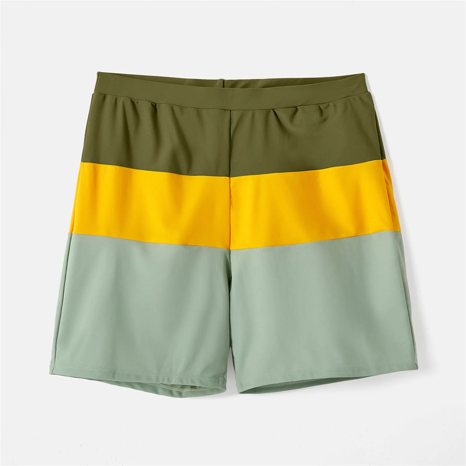 - Verschönern Sie den Strandlook Ihrer Familie mit unserem einteiligen Badeanzug mit Colorblock-Print und passender Badehose für Damen.