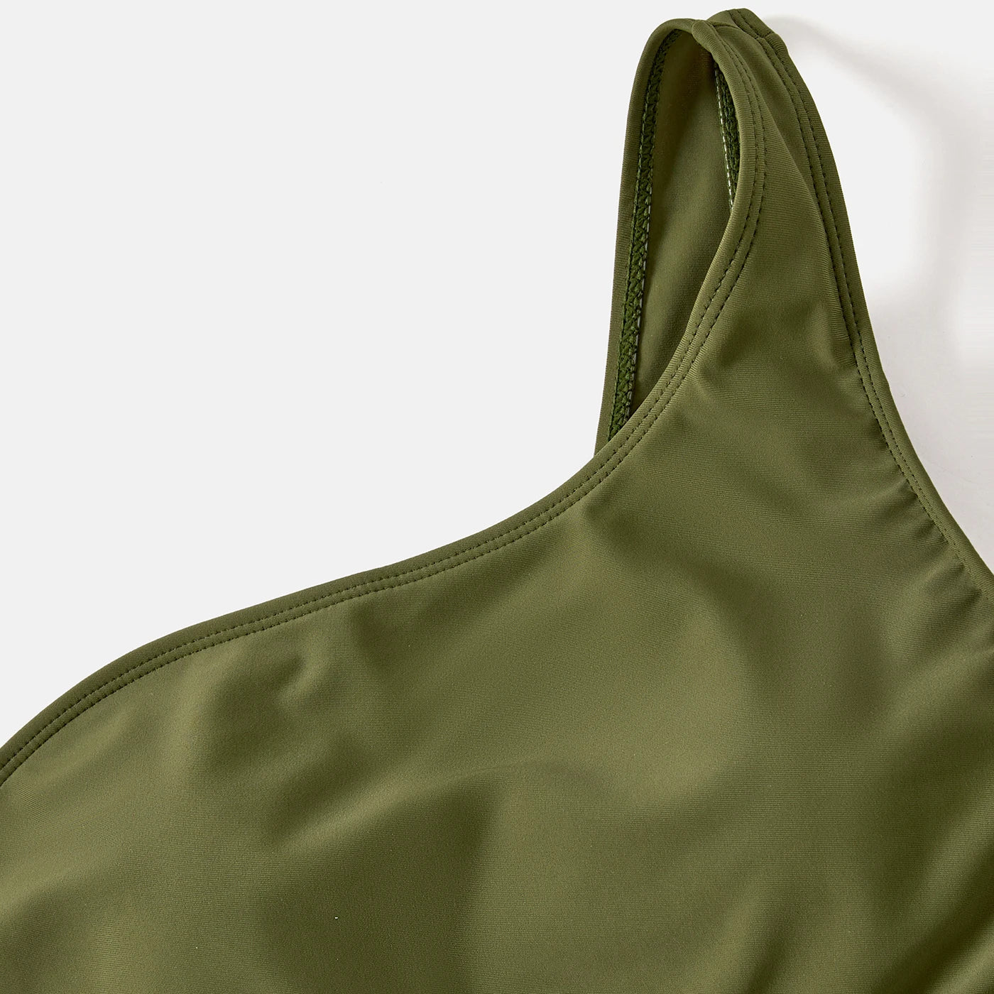 Passender One-Shoulder-Badeanzug und Badehose für die ganze Familie