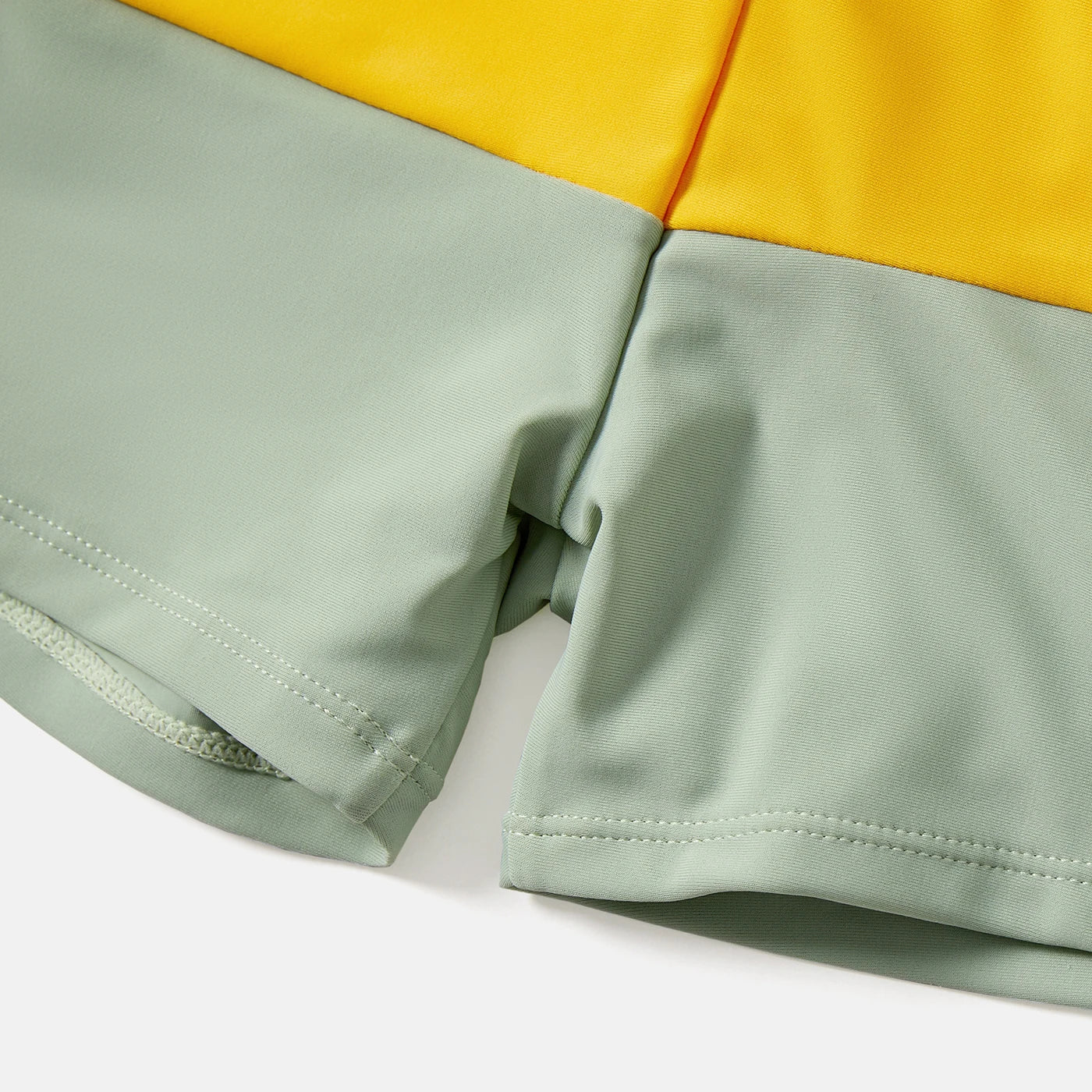 Machen Sie mit Ihrer Familie einen tollen Strand- oder Pool-Look und präsentieren Sie sich mit unserem einteiligen Badeanzug mit Colorblock-Print und passender Badehose für einen harmonischen und stylischen Look. Genießen Sie Komfort, Strapazierfähigkeit und einen modischen Familien-Strandlook in einem!