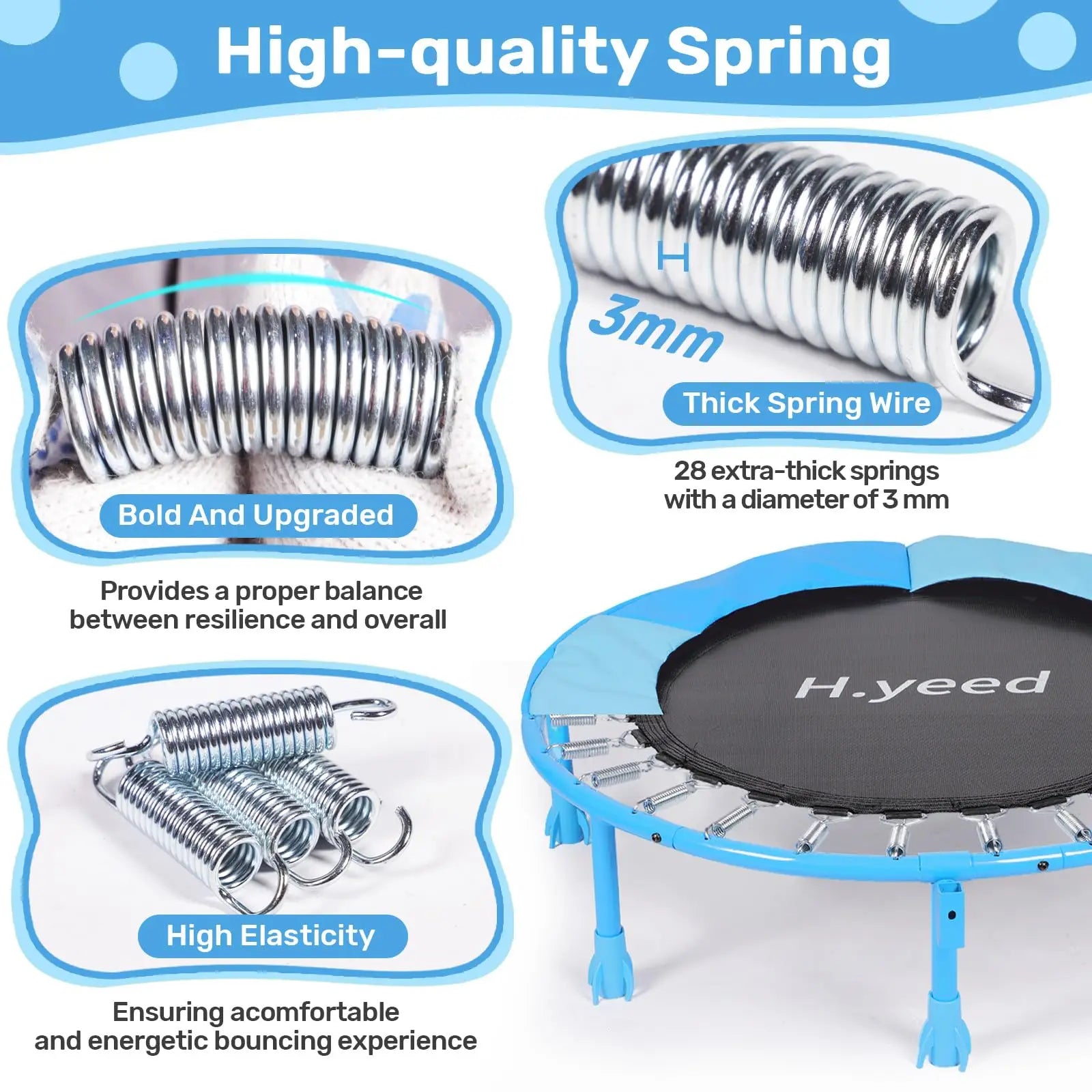 Premium Sturdy Construction: Crafted with a thickened steel frame and 28 high-elasticity springs, ensuring even pressure distribution and a smooth, consistent bounce.