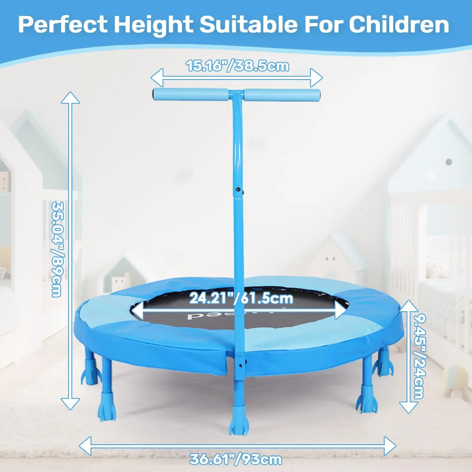 This 36-inch Mini Trampoline is the perfect way for kids to release energy, improve physical health, and have fun right inside your home or playroom. Designed with exceptional safety and durability in mind, it provides a stable and consistent bounce, making it the perfect piece of exercise equipment for toddlers and young children.