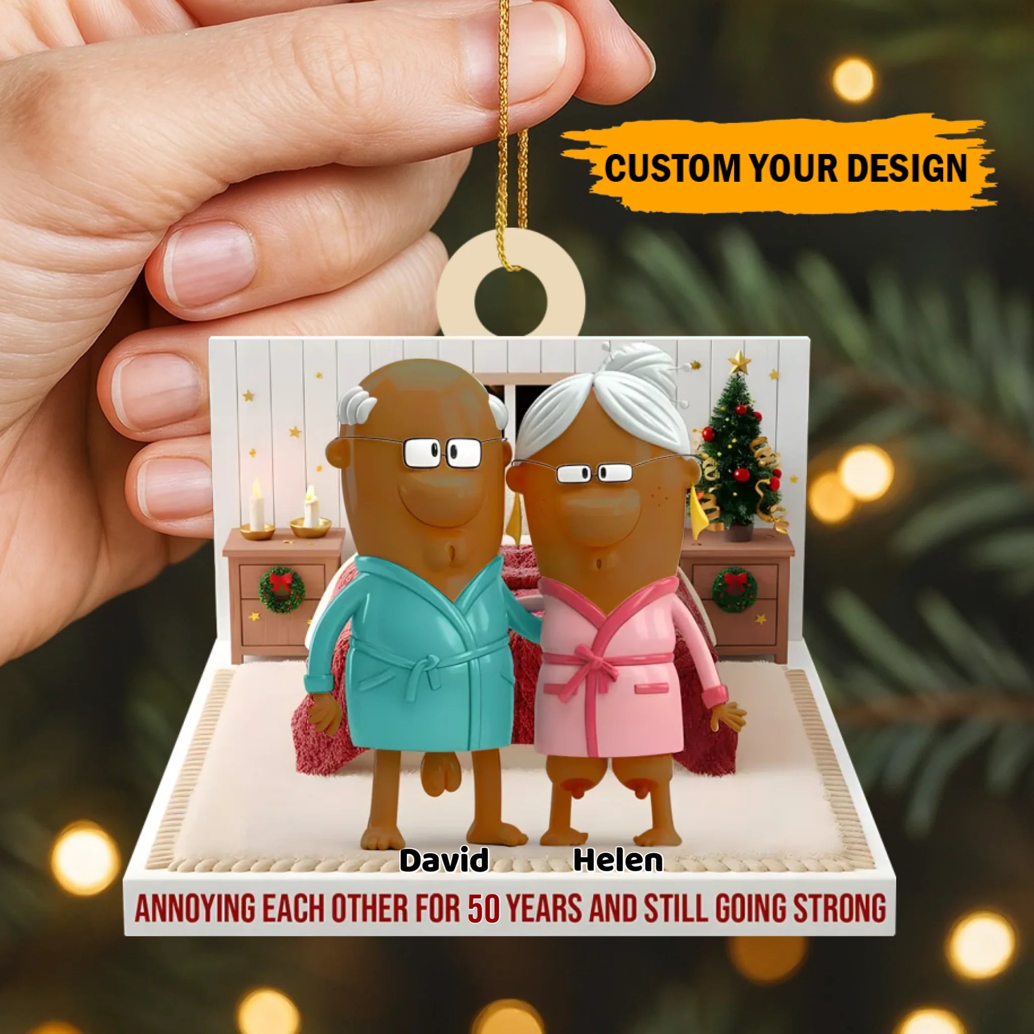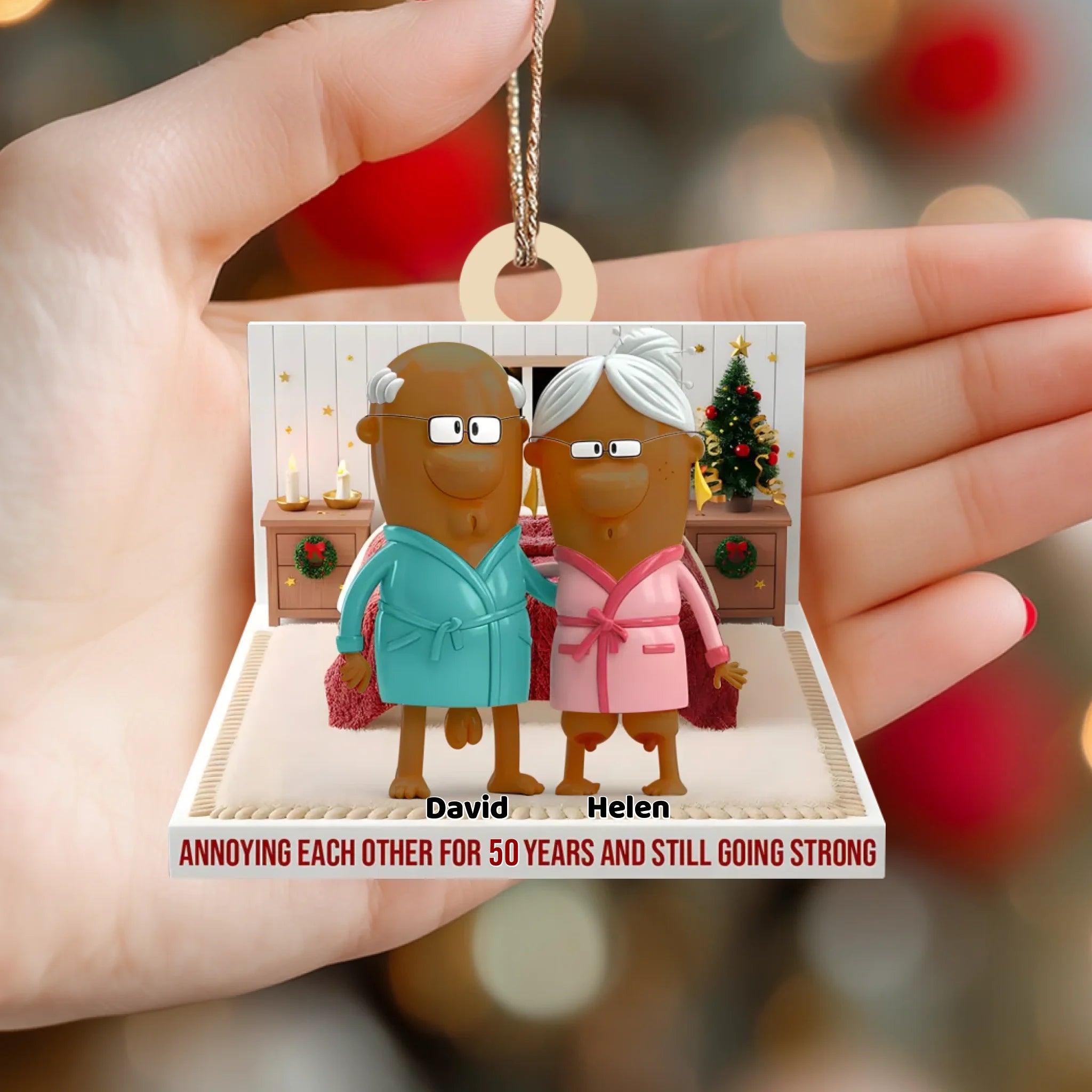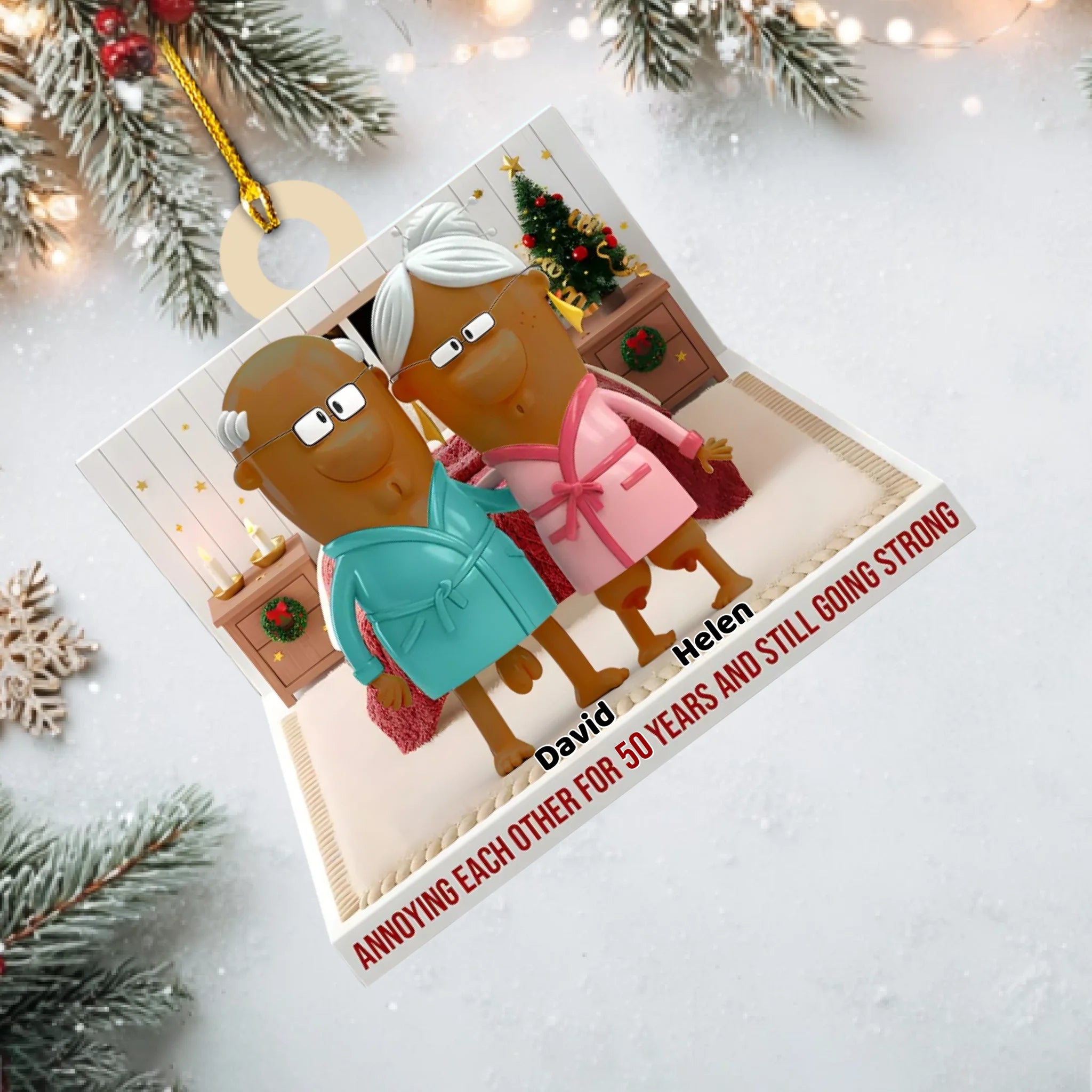Feiern Sie eine Beziehung voller Liebe, Humor und vieler gemeinsamer Jahre mit unserem „Freches Altes Paar“ Personalisierter Anhänger. Dieses charmante, fröhliche Design fängt den Geist eines Paares ein, das Jahrzehnte miteinander verbracht hat, sich liebevoll gegenseitig auf die Nerven geht und jedes Jahr stärker zusammenwächst.