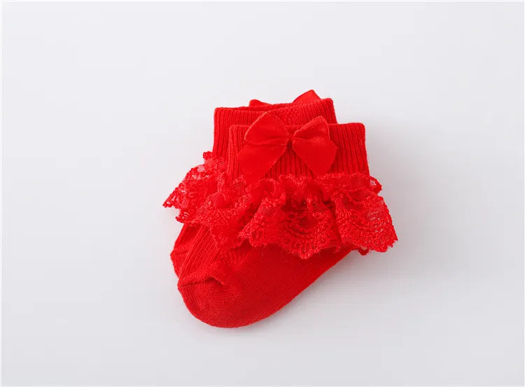 Spitzensocken für Neugeborene, Mädchen, mit Prinzessinnenschleife