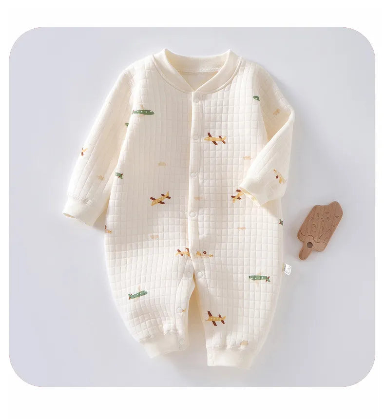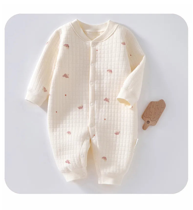 Gewöhnen Sie Ihr Baby mit unserem Baumwoll-Strampler für Neugeborene an Komfort und Stil. Dieser Strampler aus weicher und atmungsaktiver Baumwolle hält Ihr Baby in den schönen Jahreszeiten Frühling und Herbst kuschelig warm.
