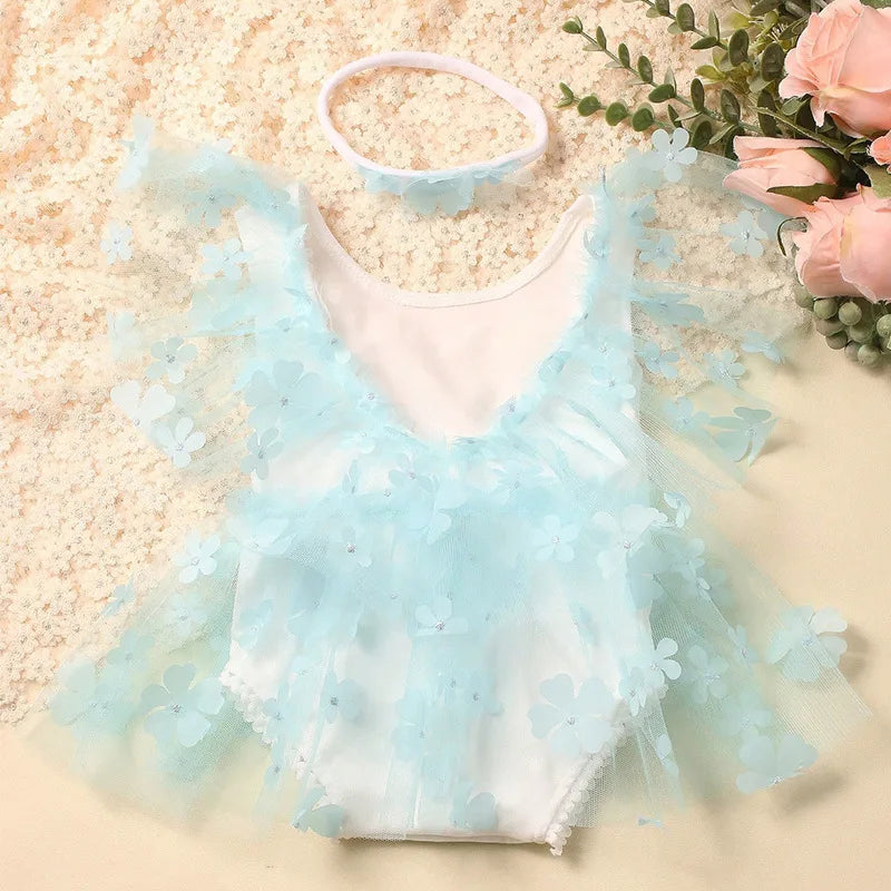 Neugeborenen Mädchen Fotografie Set - Blumen Strampler mit Stirnband