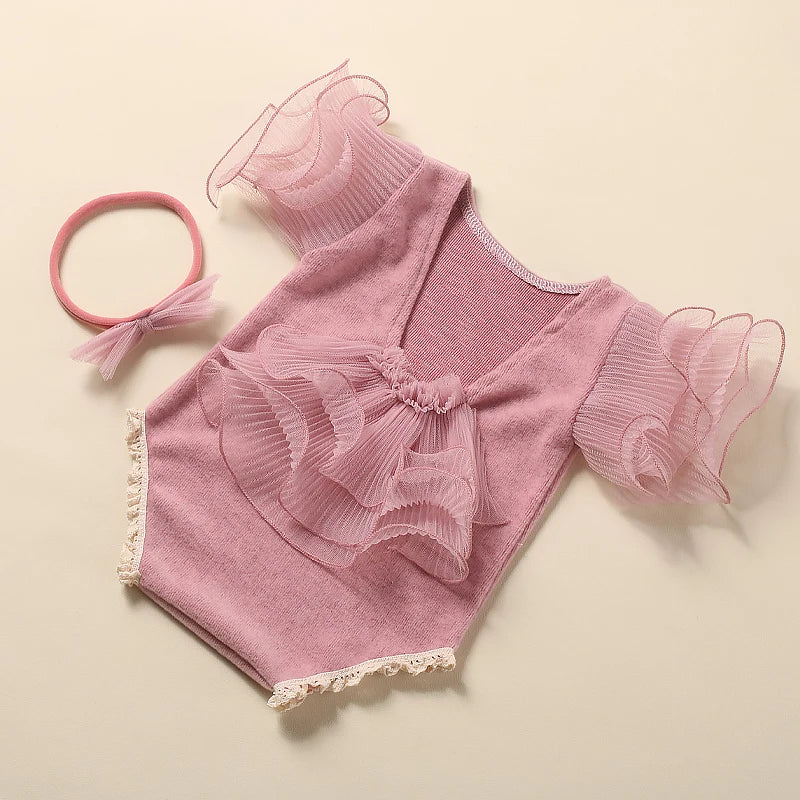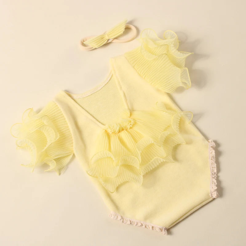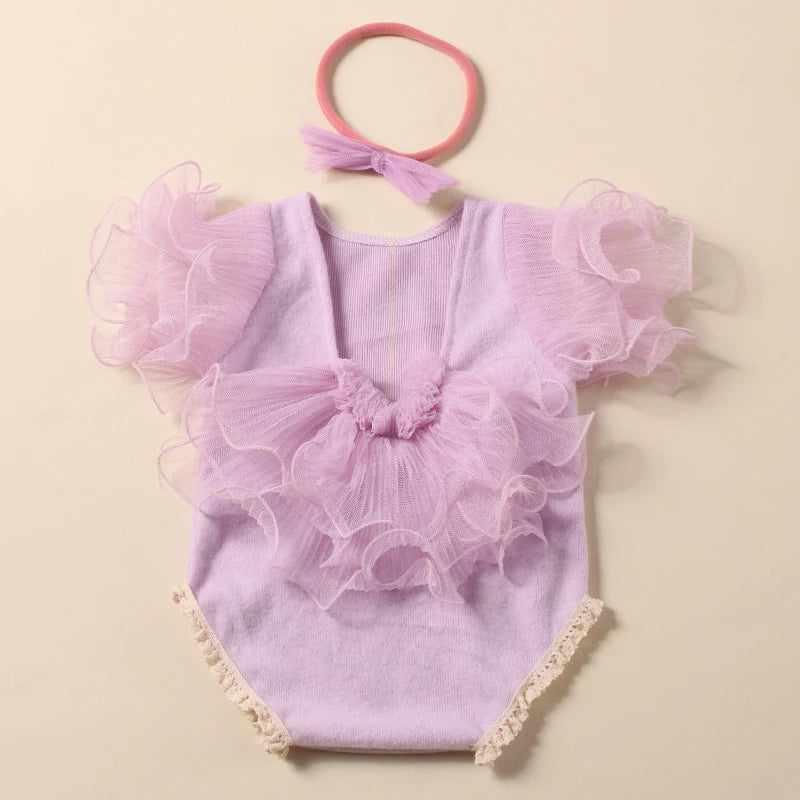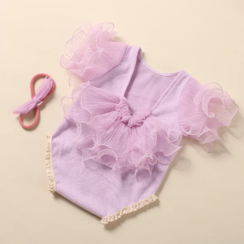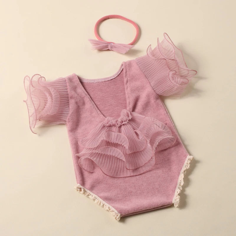 Komplettset: Mit dem Strampler und dem passenden Schleifen-Haarband bietet dieses Set alles, was Sie für atemberaubende Fotos brauchen, die die Schönheit Ihrer neugeborenen Prinzessin einfangen.