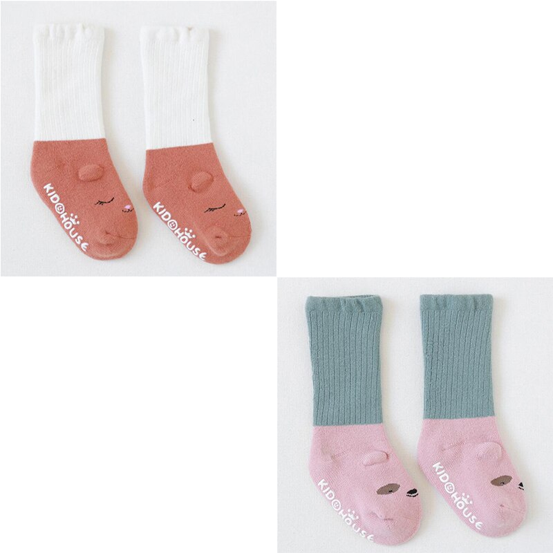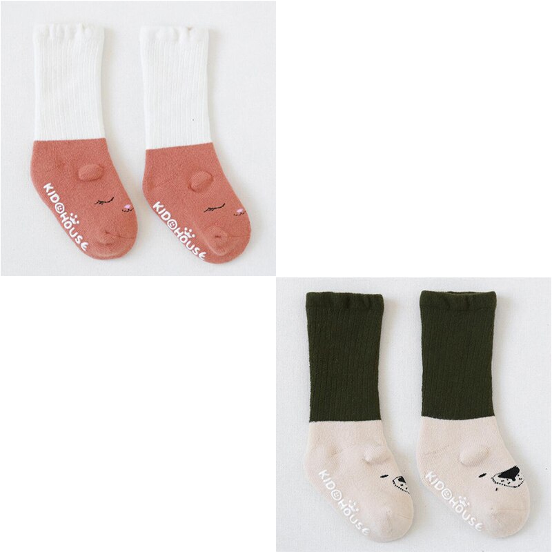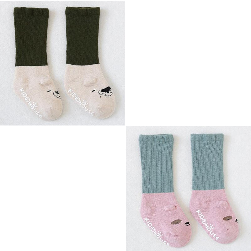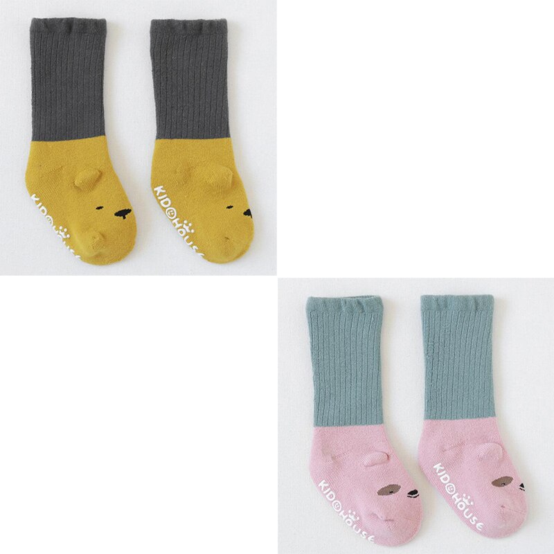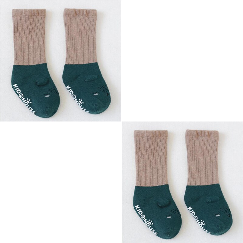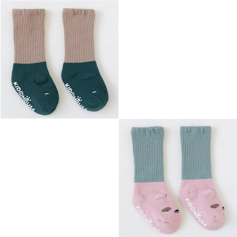 Dicke Baumwollsocken halten warm und sind rutschfest. Verschiedene Farben zur Auswahl. Schickes Design mit 2 verschiedenen Volltonfarben, 1 Set mit 2 Paaren. Für Kinder von 0–3 Jahren.