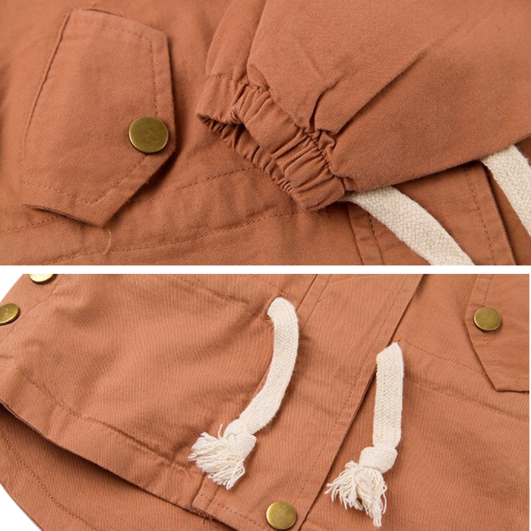Diese Nordic Color Denim-Button-Style-Jacke ist eine moderne Interpretation eines klassischen Stils als Herbstmode für Mädchen. Eine einfache Jacke für den Komfort von Mädchen und einen ziemlich edlen Modestil.