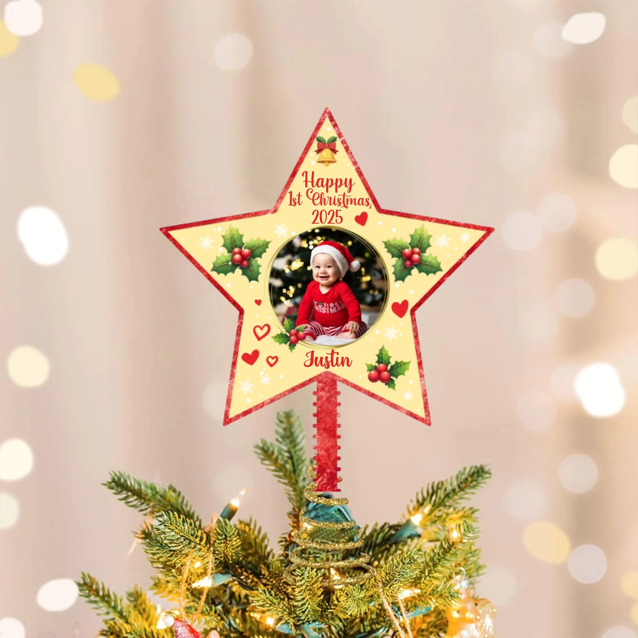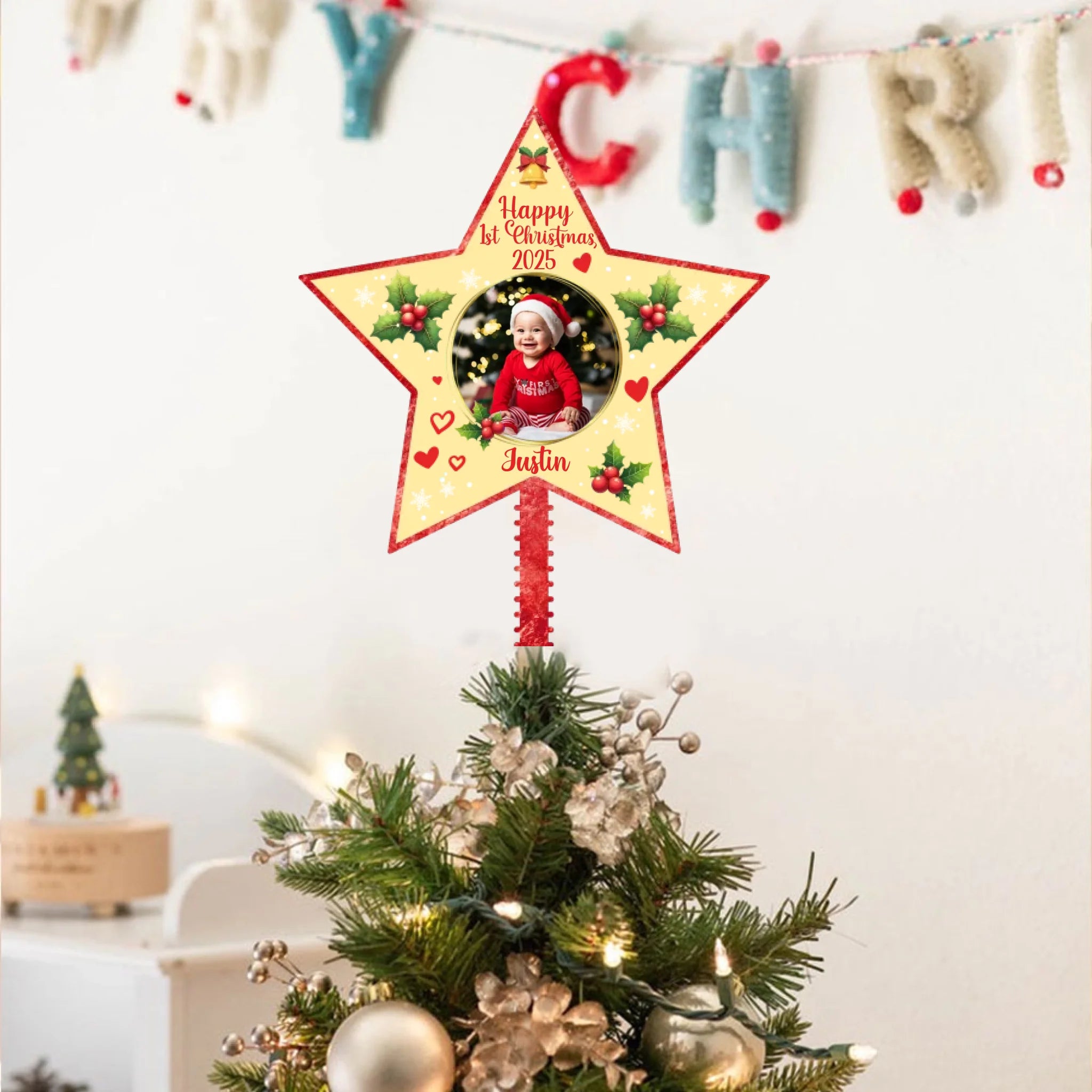Personalisierter Baby’s First Christmas Foto-Baumspitzenstern – Individueller Acrylspiegel-Stern als Christbaumspitze (2025)