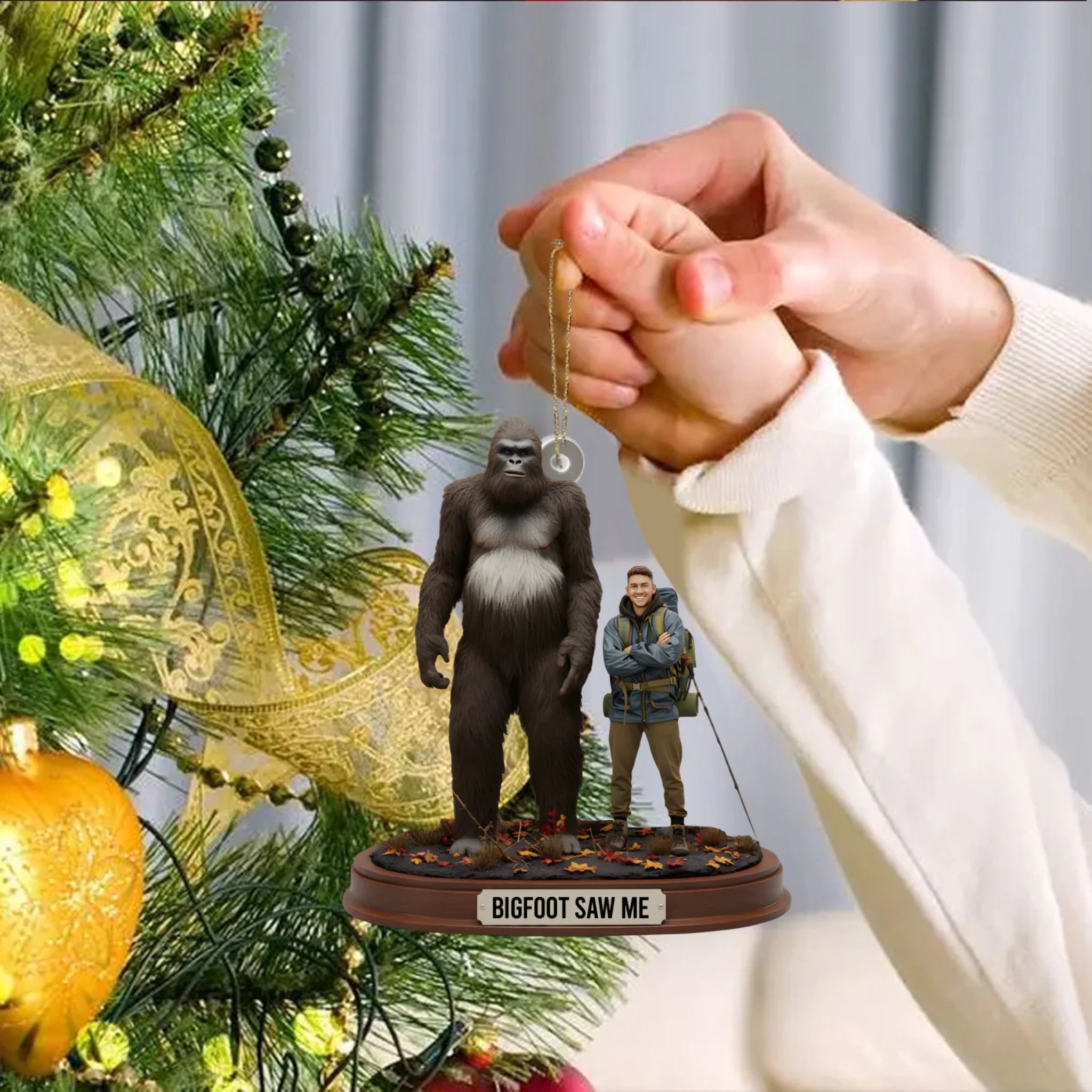 Personalisierter „Bigfoot Hat Mich Gesehen“ Acryl-Anhänger – Individuelles Foto-Geschenk für Wanderer | Lustige Weihnachtsdekoration für Abenteurer & Outdoor-Fans