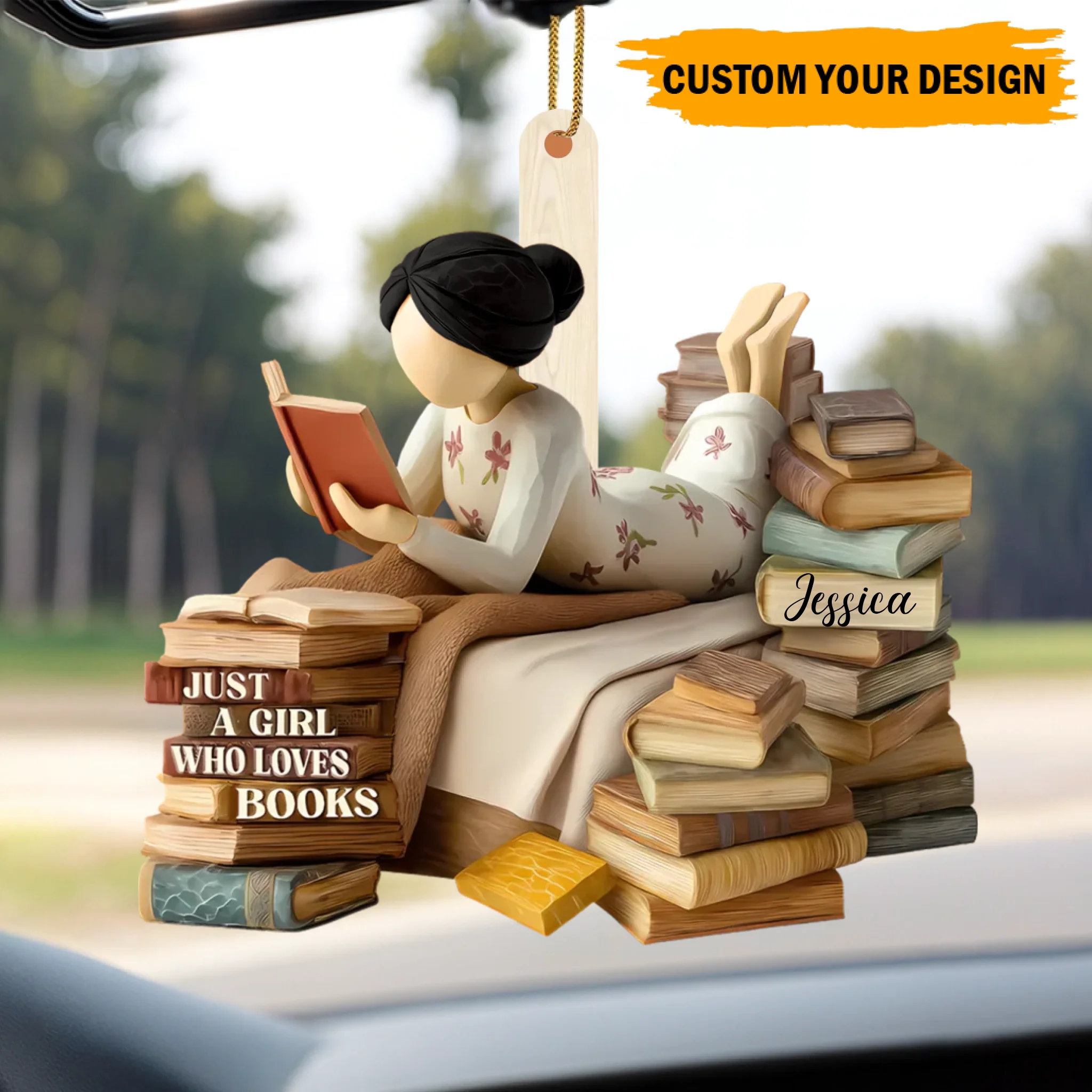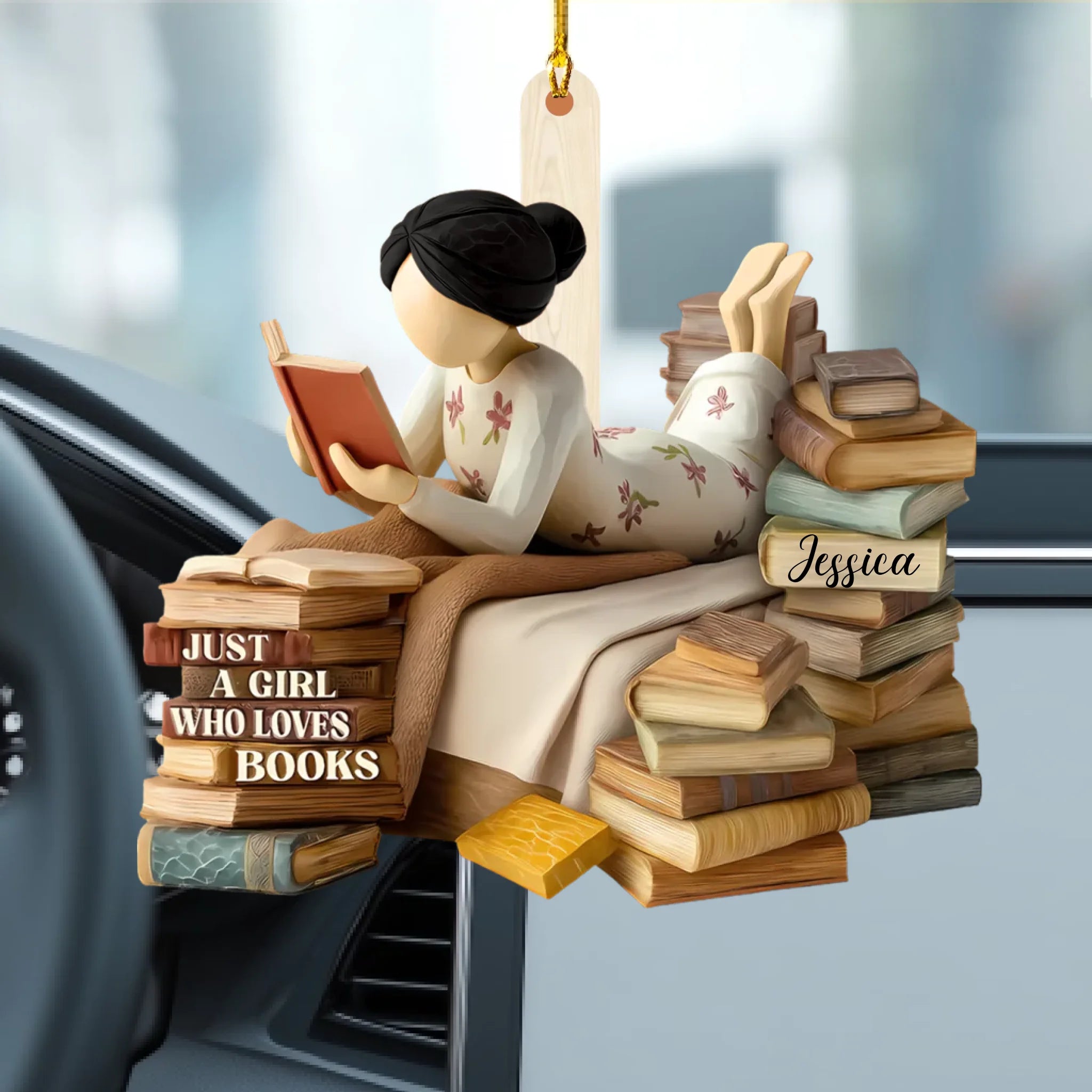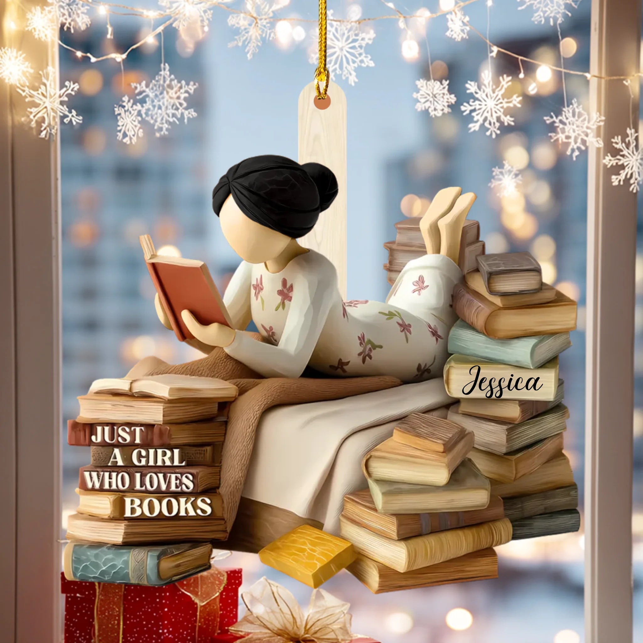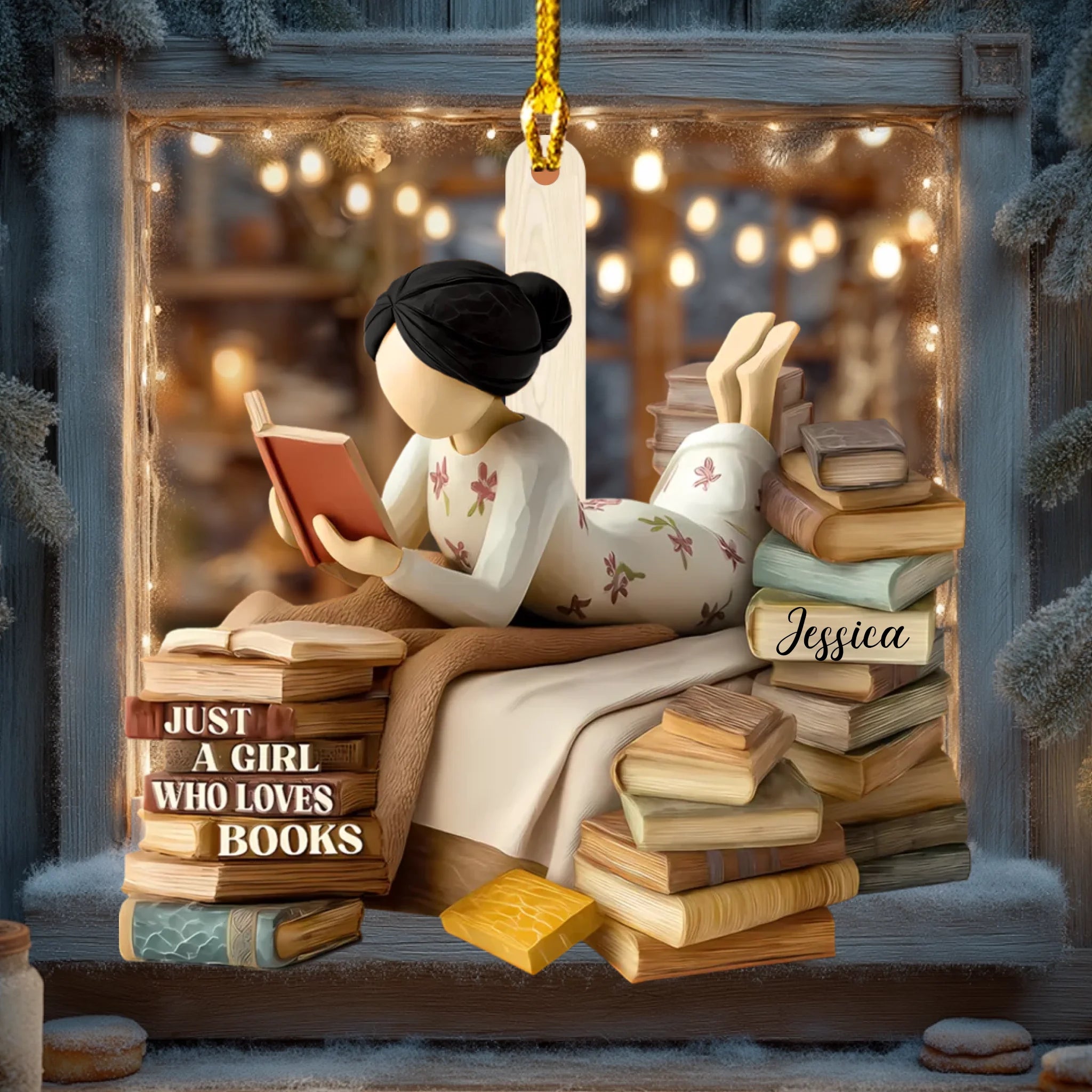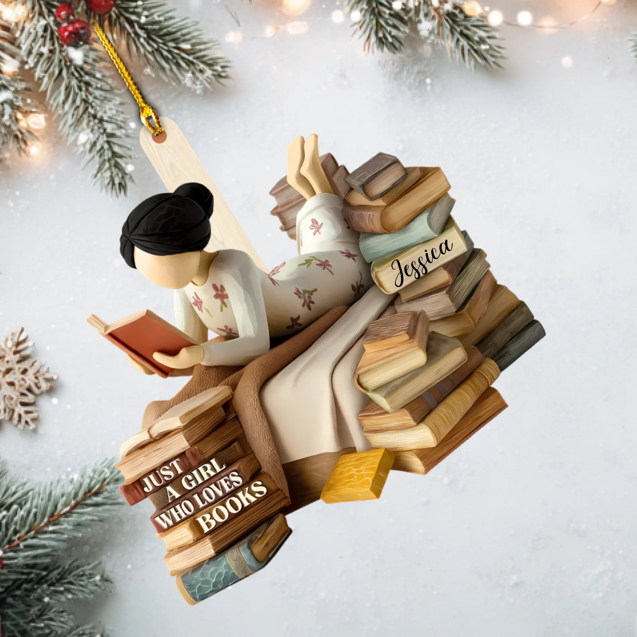 Personalized Book Lover Girl Wooden Ornament – Custom Name Reading Ornament | Just a Girl Who Loves Books Gift