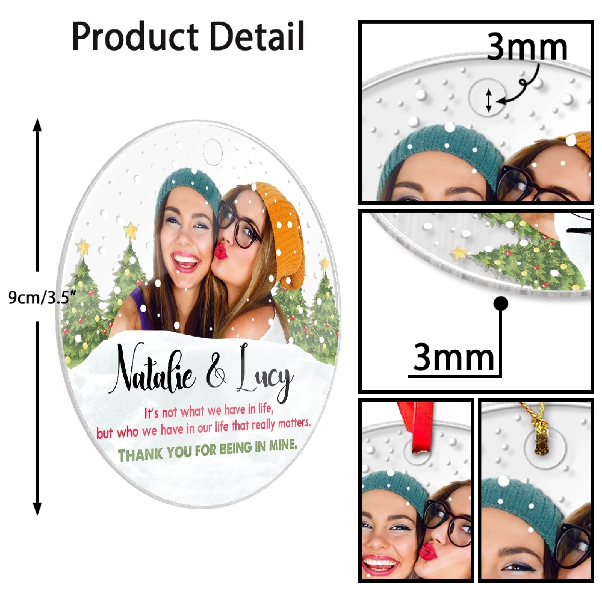 Perfekt für Paare, beste Freunde, Tierliebhaber oder Familienmomente. Jedes Ornament wird individuell in leuchtenden Farben mit Namen, Fotos oder bedeutungsvollem Text bedruckt. Ob Sie Ihren Weihnachtsbaum schmücken oder jemandem etwas Besonderes schenken – dieses Stück verleiht jeder Feier Herz und Glanz.