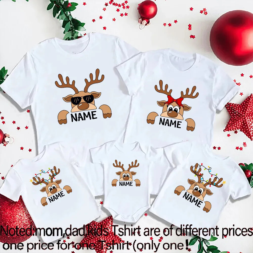 Personalized Family Christmas Reindeer Shirts Custom Family Name Matching Outfits – Mom, Dad, Kids & Baby