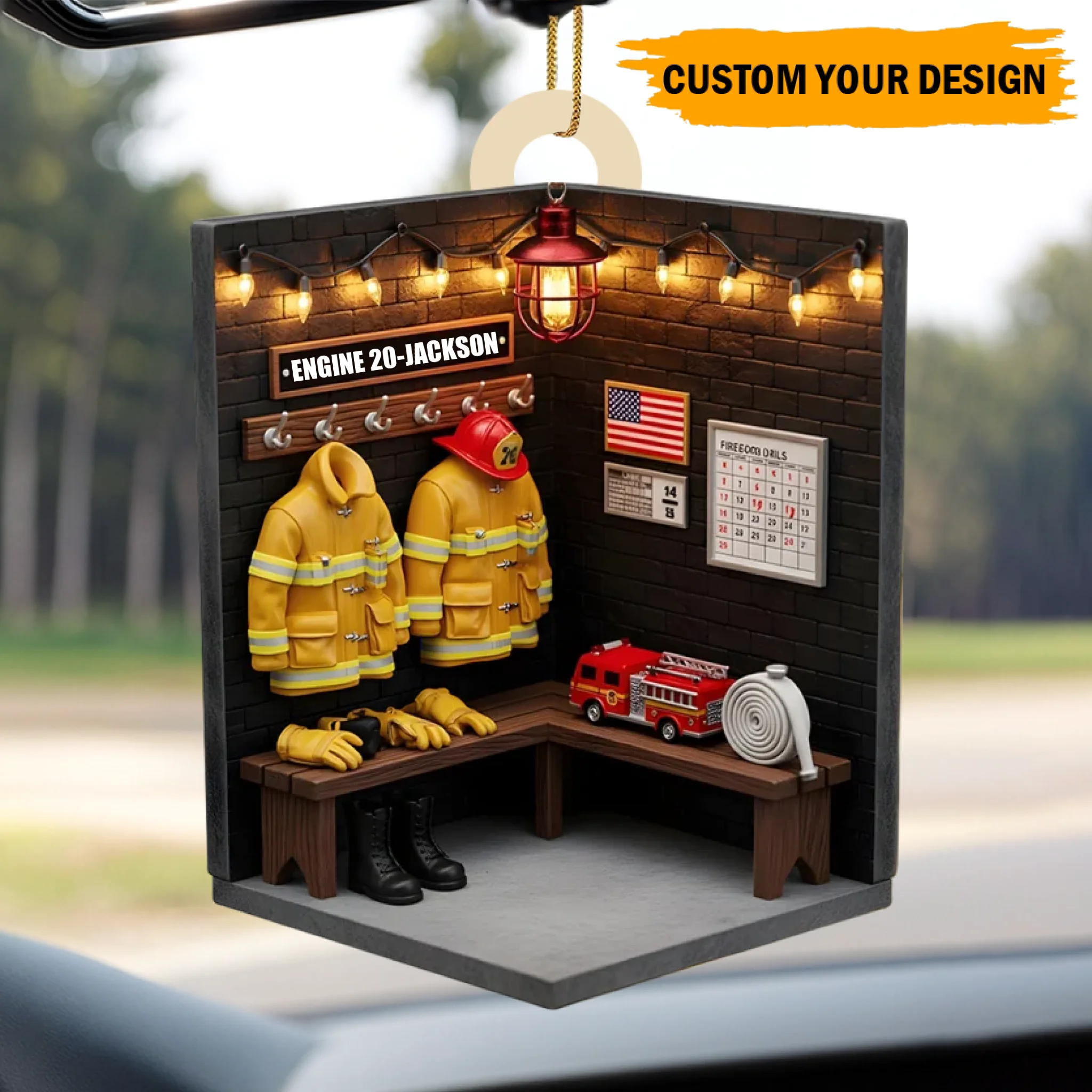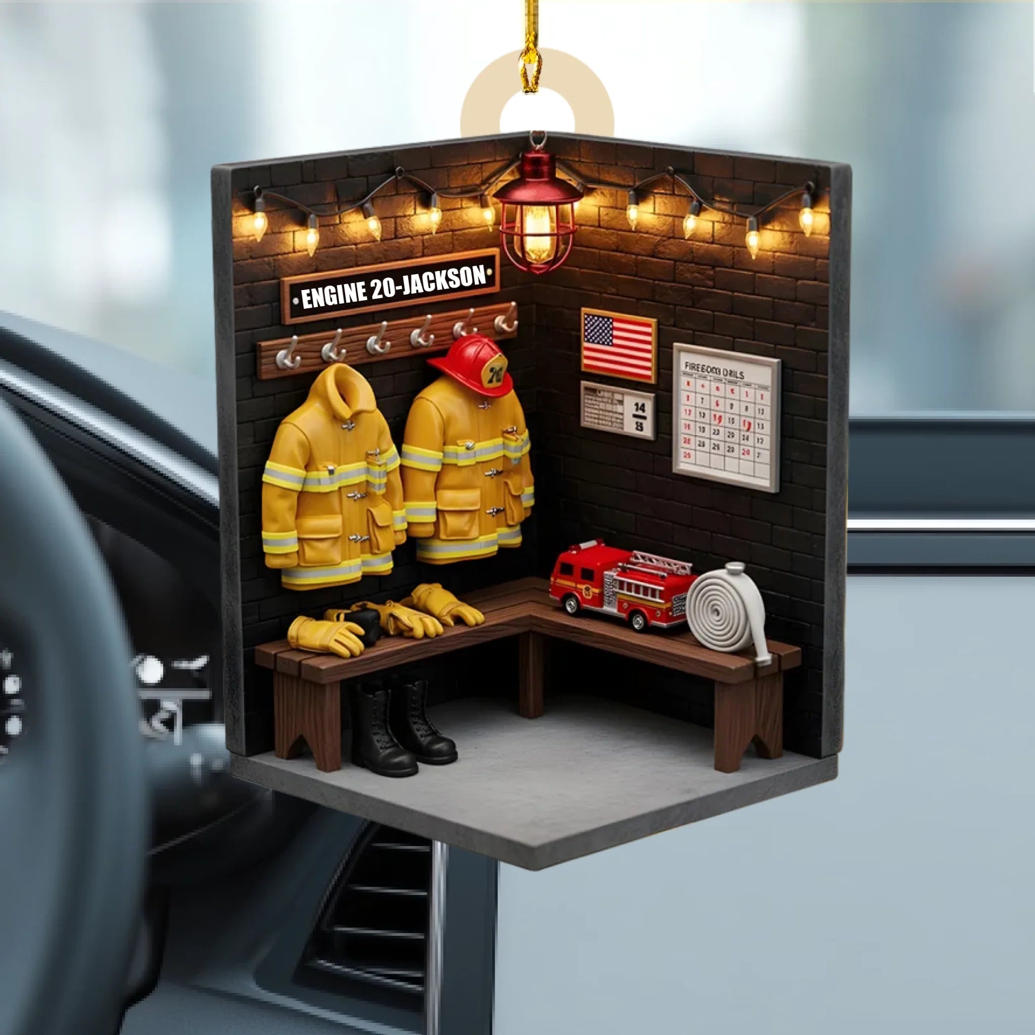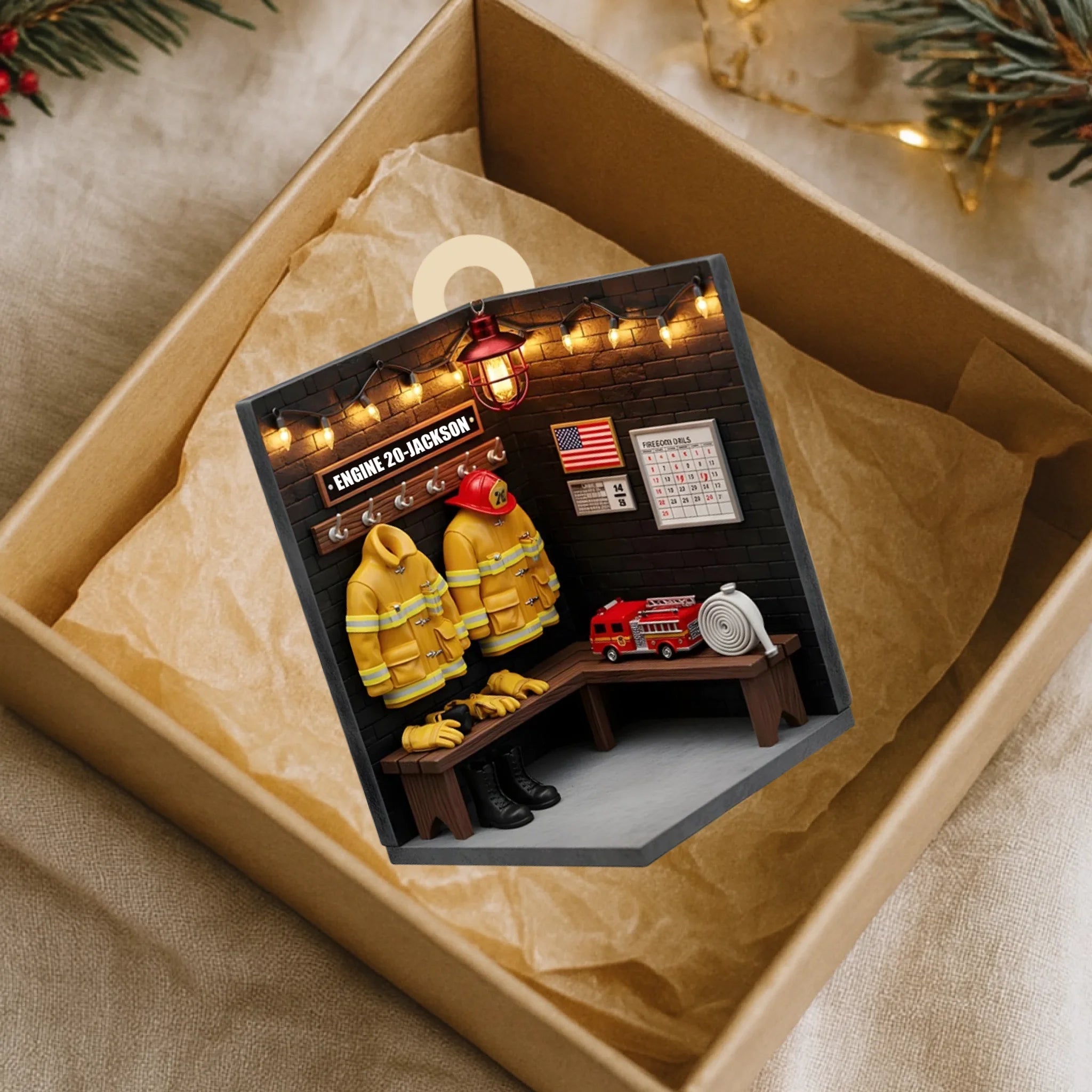 Personalisiertes Feuerwehrmann-Zimmer Holzornament – Individuelles Feuerwache-Ausrüstungsraum Weihnachtsgeschenk für Feuerwehrleute