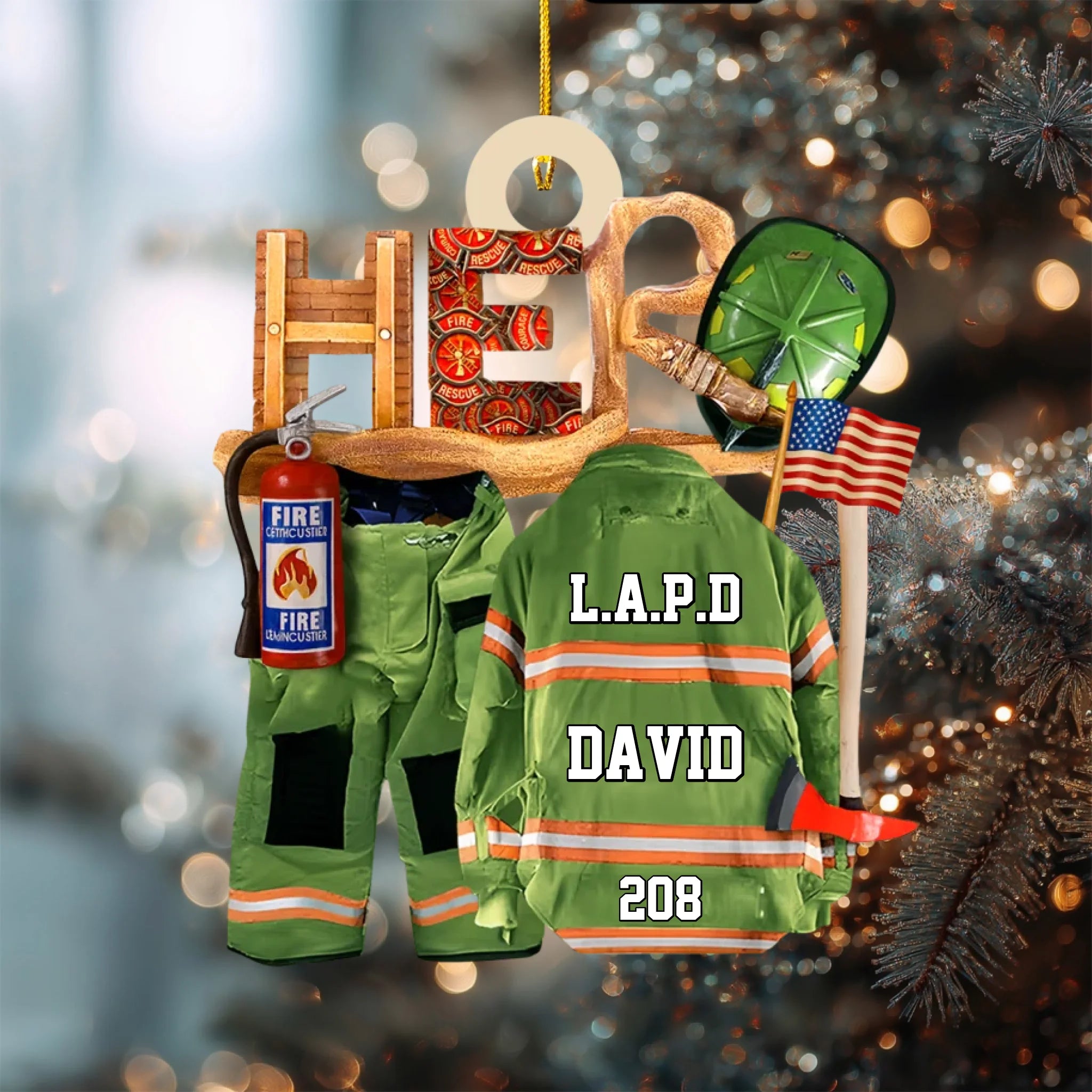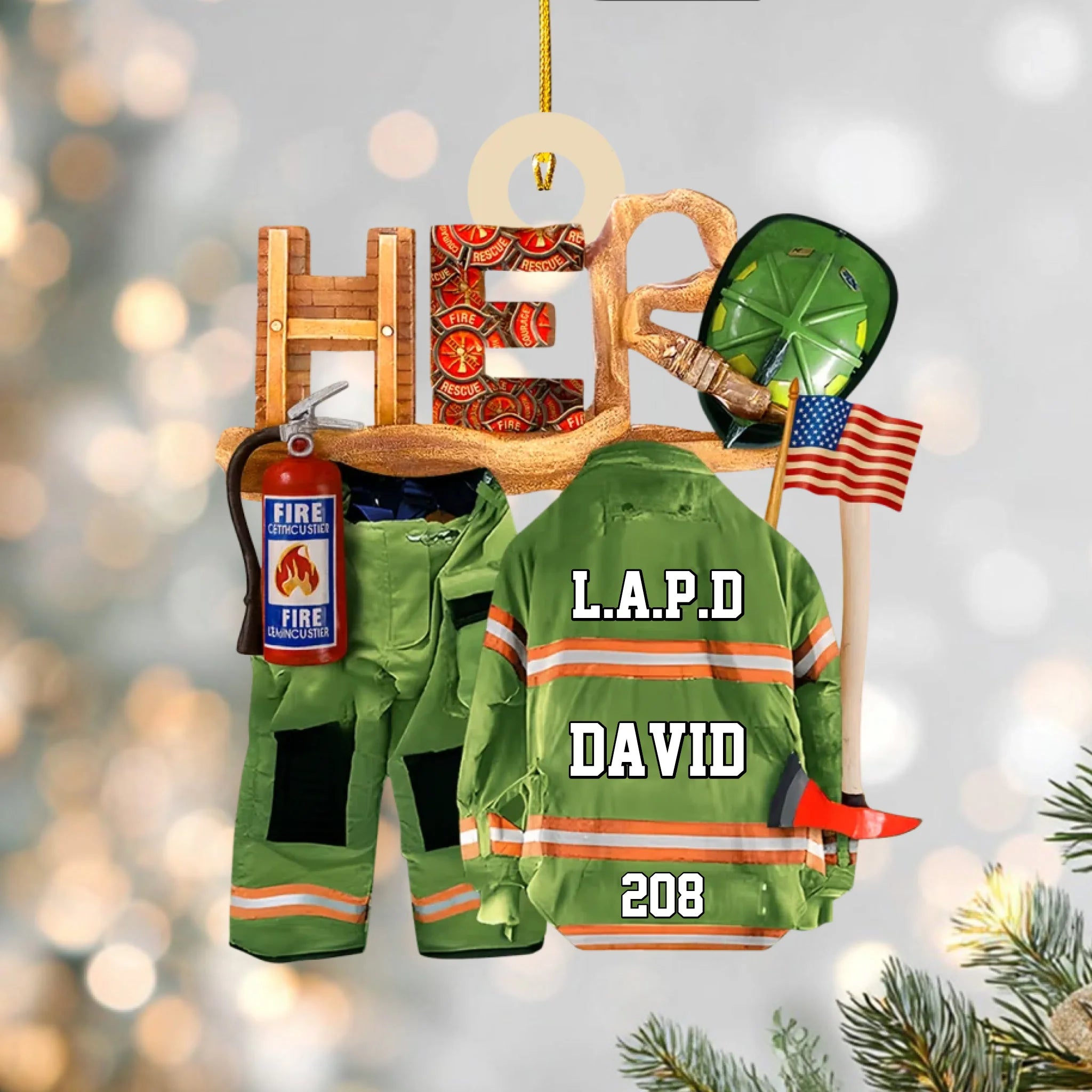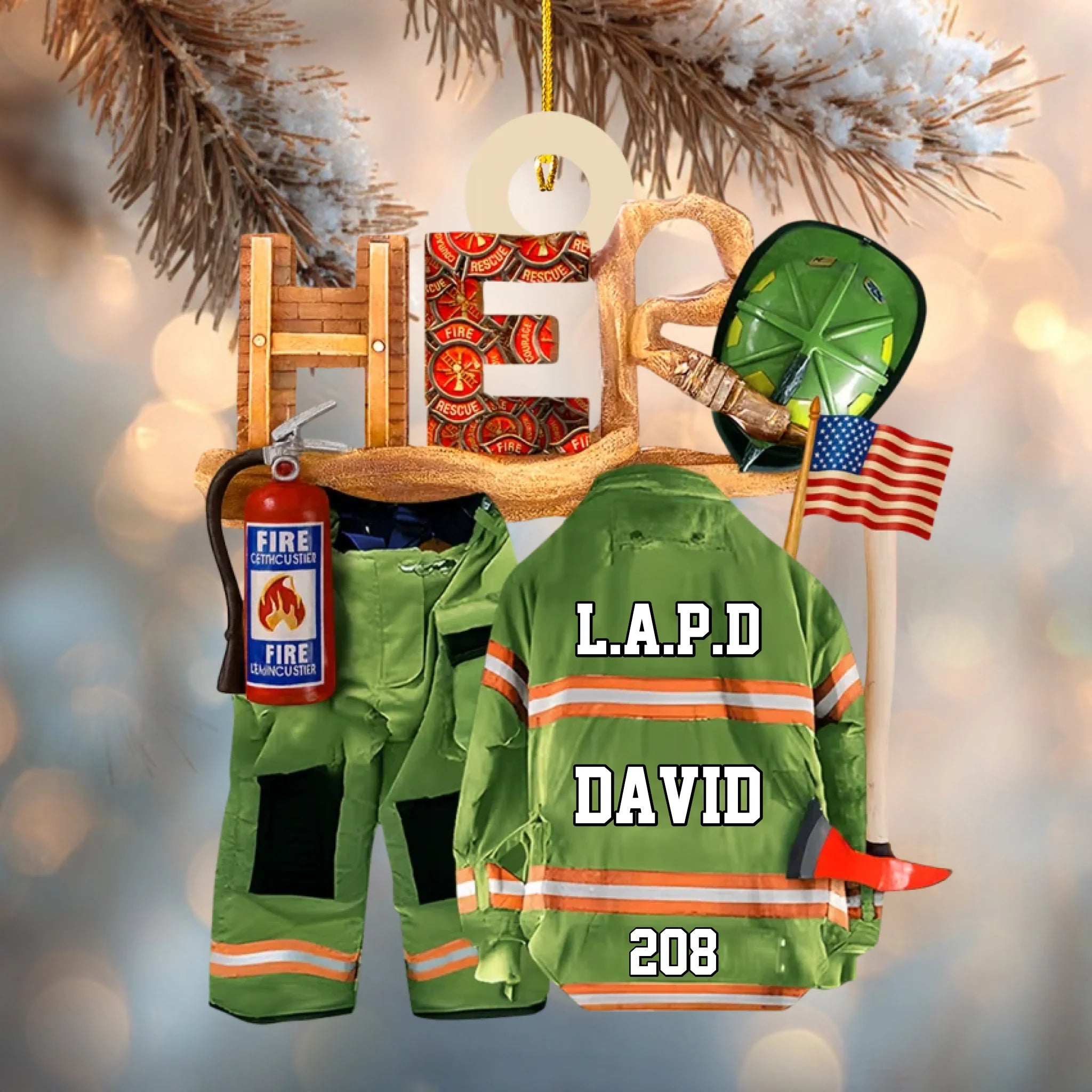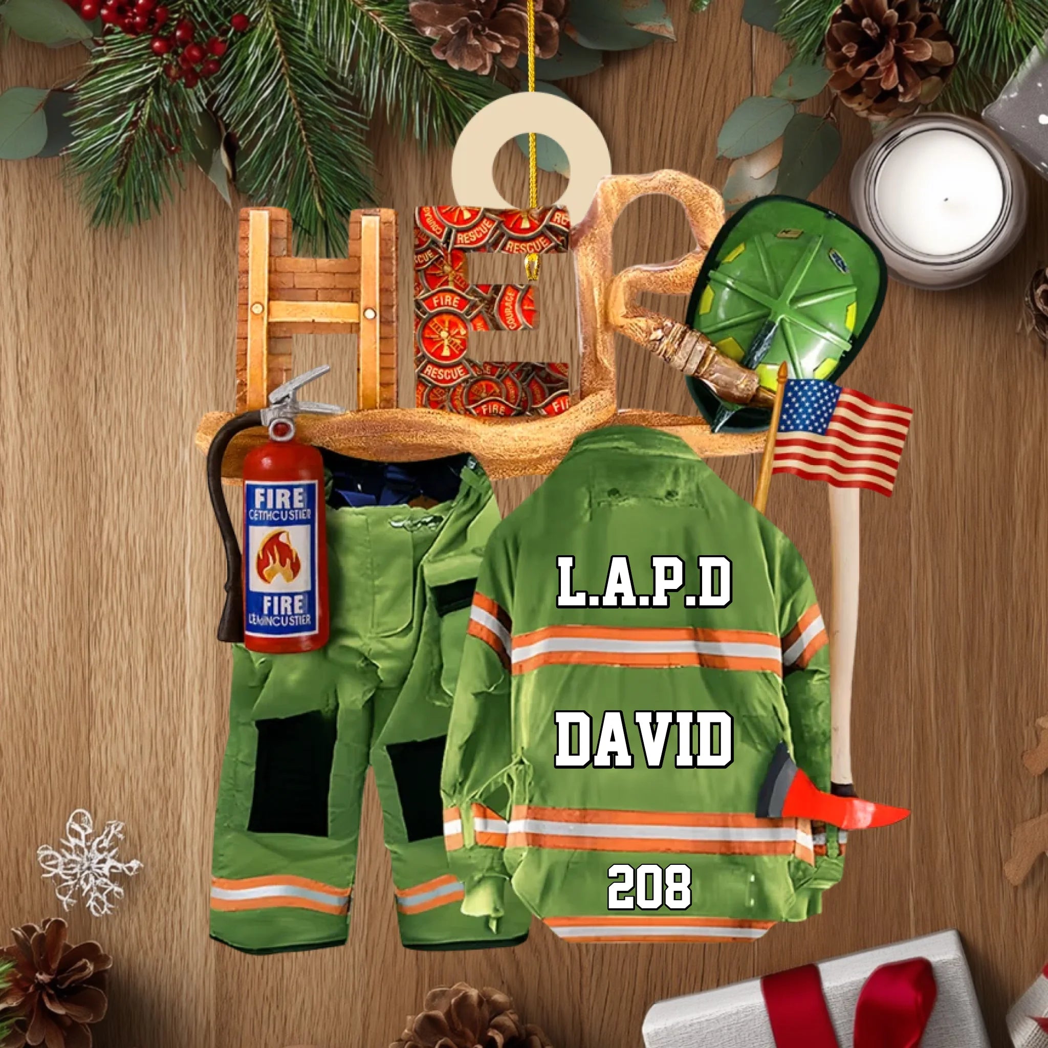 Personalized Firefighter Uniform Wooden Ornament – Custom Name, Department & Number Gift for Heroes