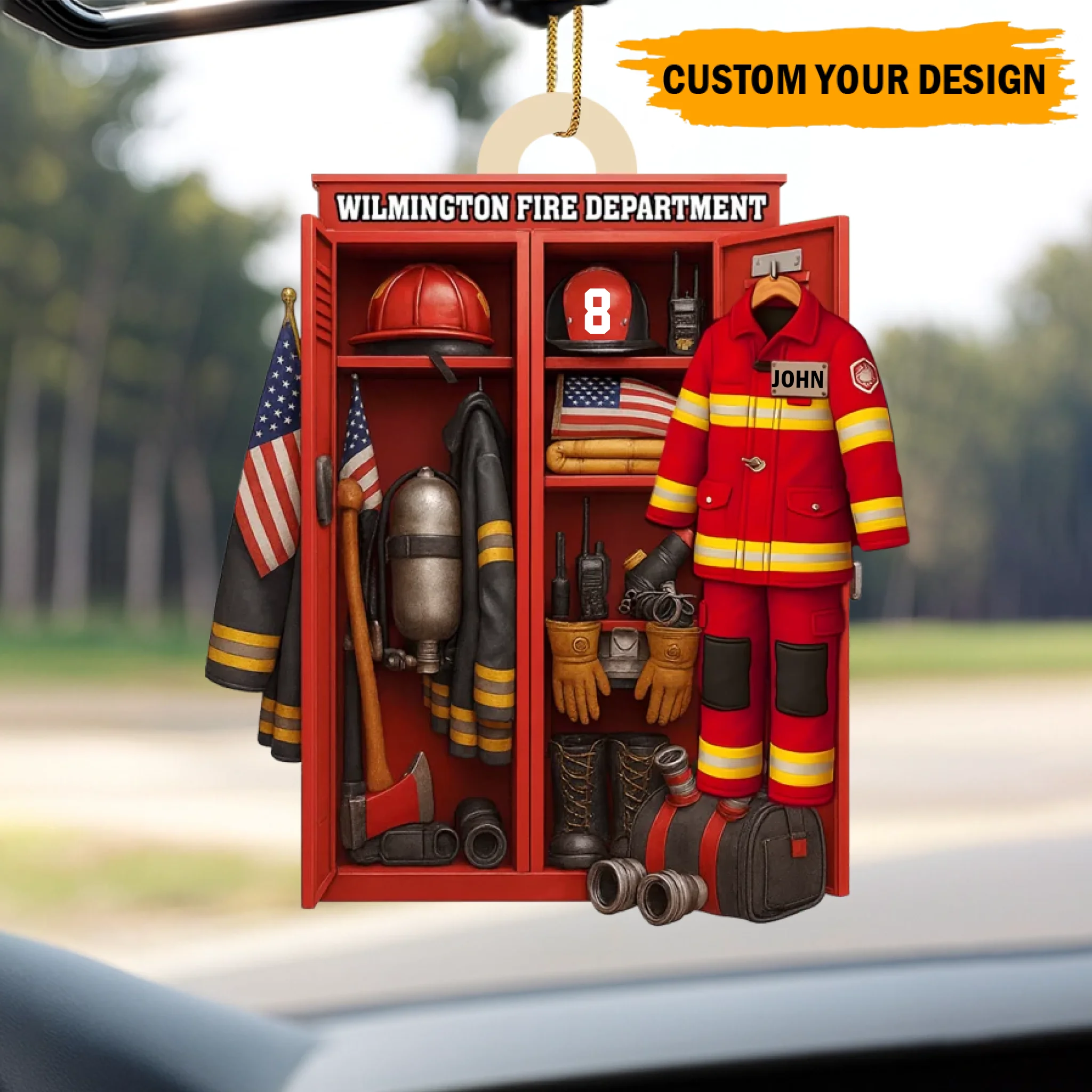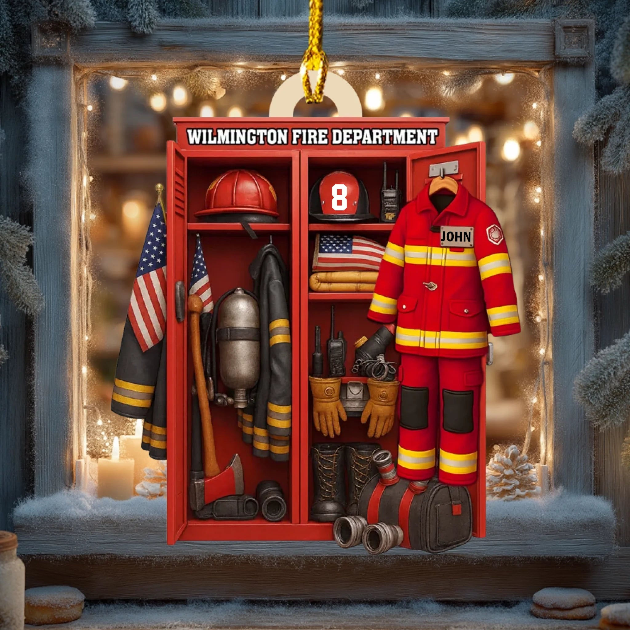 Mit einer detaillierten Szene aus der Umkleide der Feuerwache, die anpassbar ist Feuerwehruniform, Helm und Nummer, ehrt dieser Anhänger perfekt diejenigen, die ihr Leben riskieren, um andere zu schützen. Ob auf dem Weihnachtsbaum, zu Hause oder im Auto – es ist ein sinnvolles Andenken, das Mut, Dienst und Stolz symbolisiert.